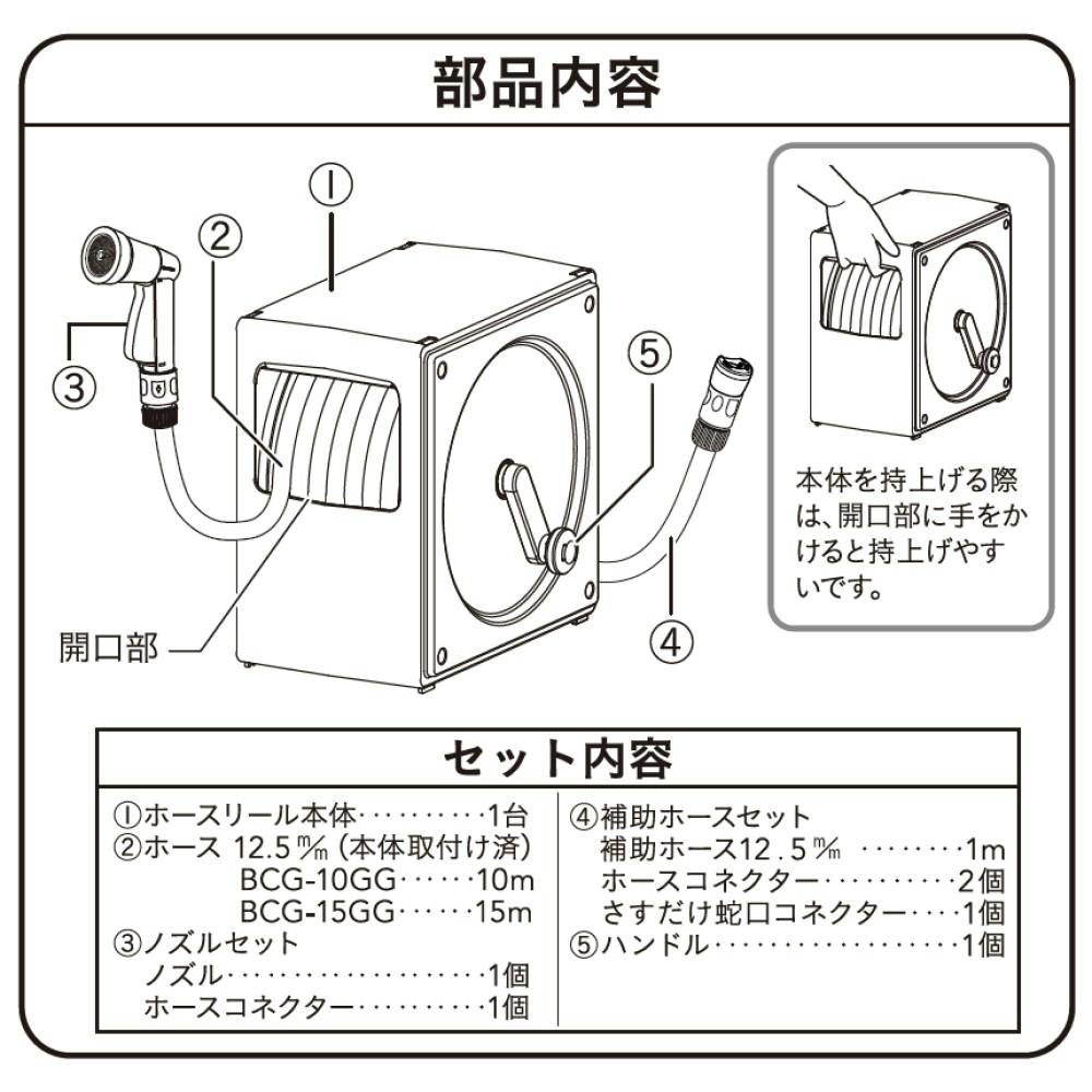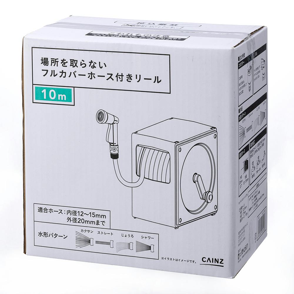 カインズ 場所を取らないフルカバーホース付きリール 長さ10m 外径20mmまで 内径12mm~15mm コンパクト 適合蛇口3種類 ノズルパターン4種類
