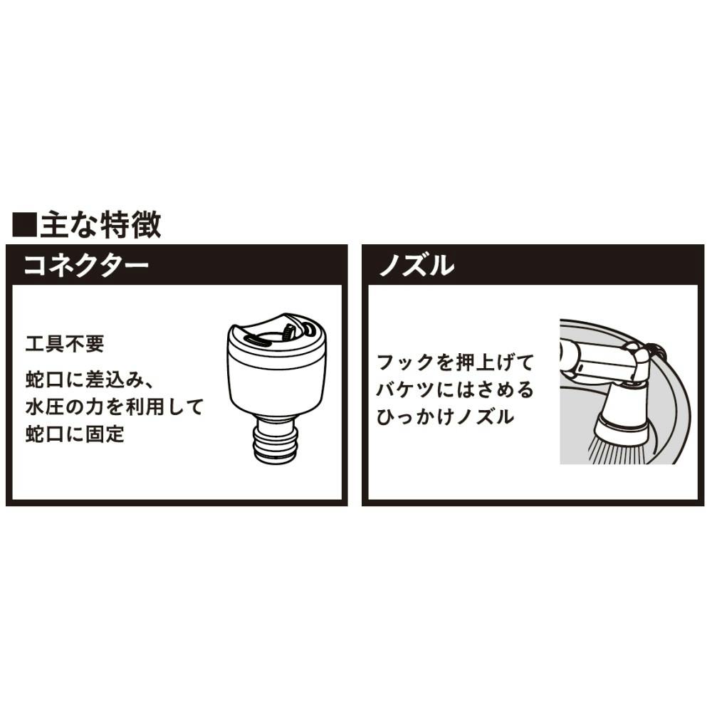 ●コンパクトでも内径12mmで水量たっぷり ●工具いらずで蛇口に差すだけで使用出来るコネクター使用 ●カバータイプで紫外線による劣化を軽減