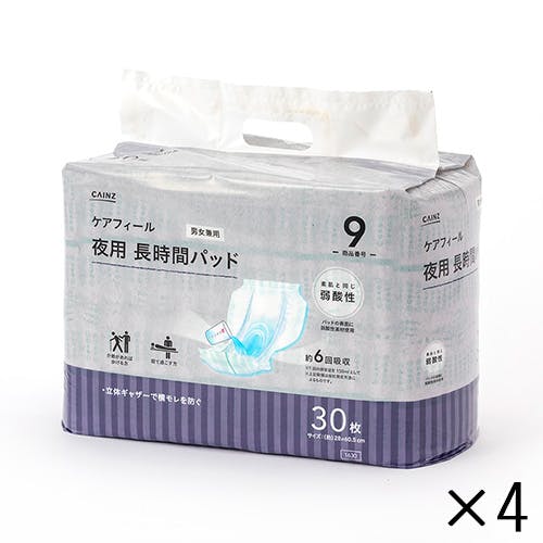 • 【ケース販売】ケアフィール 男女兼用 夜用 長時間パッド 約6回吸収 120枚(30枚×4個) 医療費控除対象商品
