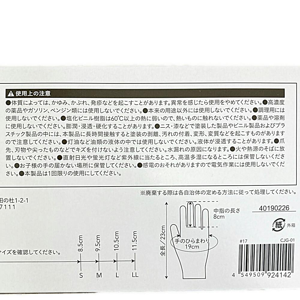 • カインズ 極薄 ビニール手袋 100枚入り M