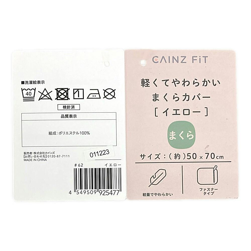 軽くてやわらかいまくらカバー イエロー 50x70cm※カバーのみ