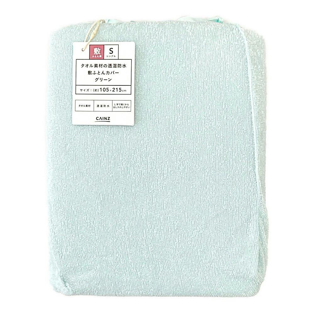 タオル素材の透湿防水 敷ふとんカバー グリーン シングル※カバーのみ