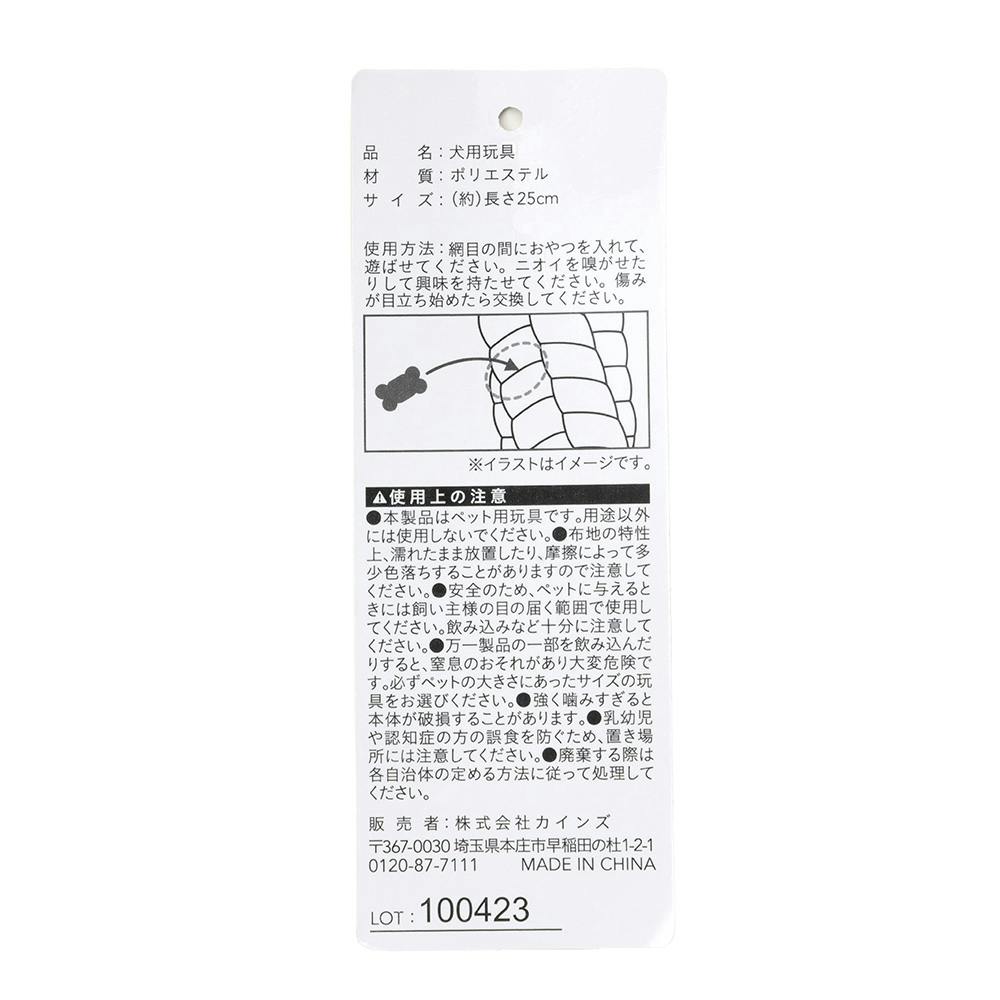 ●本製品はペット用玩具です。用途以外には使用しないでください。●布地の特性上、濡れたまま放置したり、摩擦によって多少色落ちすることがありますので注意してください。等