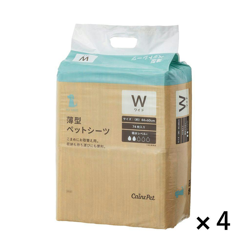 【ケース販売】カインズ 薄型ペットシーツ ワイド 74枚×4個入 犬用 小型犬約1回分おしっこ吸収 圧縮コンパクト包装