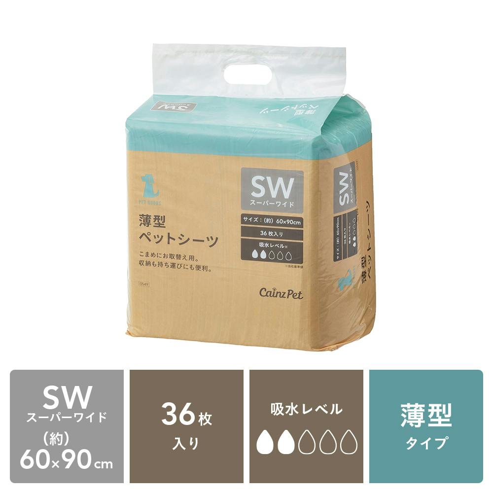 【ケース販売】カインズ 薄型ペットシーツ スーパーワイド 36枚×4個入 犬用 中型犬約1~2回分おしっこ吸収 圧縮コンパクト包装