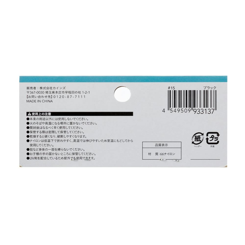 ●本来の用途以外には使用しないでください。●火のそばや高温になる場所に置かないでください。●開封後はなるべく早くご使用ください。●ナイロンは低温下で折れやすく、高温では伸びやすいため室温にもどしてからご使用ください。●指など身体の一部を縛らないでください。