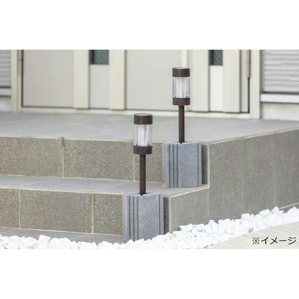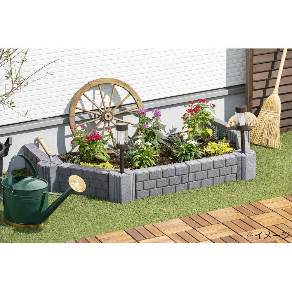 セメントを圧縮したブロックタイプのソーラーライトスタンド。レンガ調花壇材のコーナーとしても使えます。