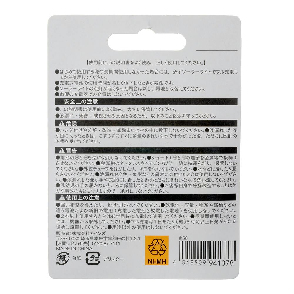 カインズ ソーラーライト専用充電池 単3型 1000mAh