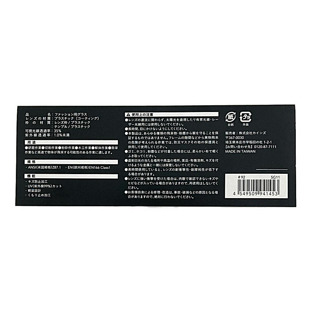 キズ防止加工、UV(紫外線99%)カット、軽量設計、くもり止め加工 ANSI(米国規格)Z87.1適合 EN(欧州規格)EN166 Class1適合