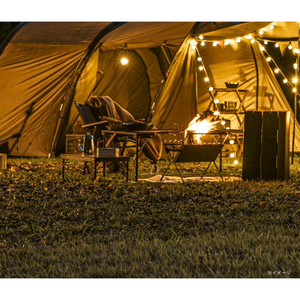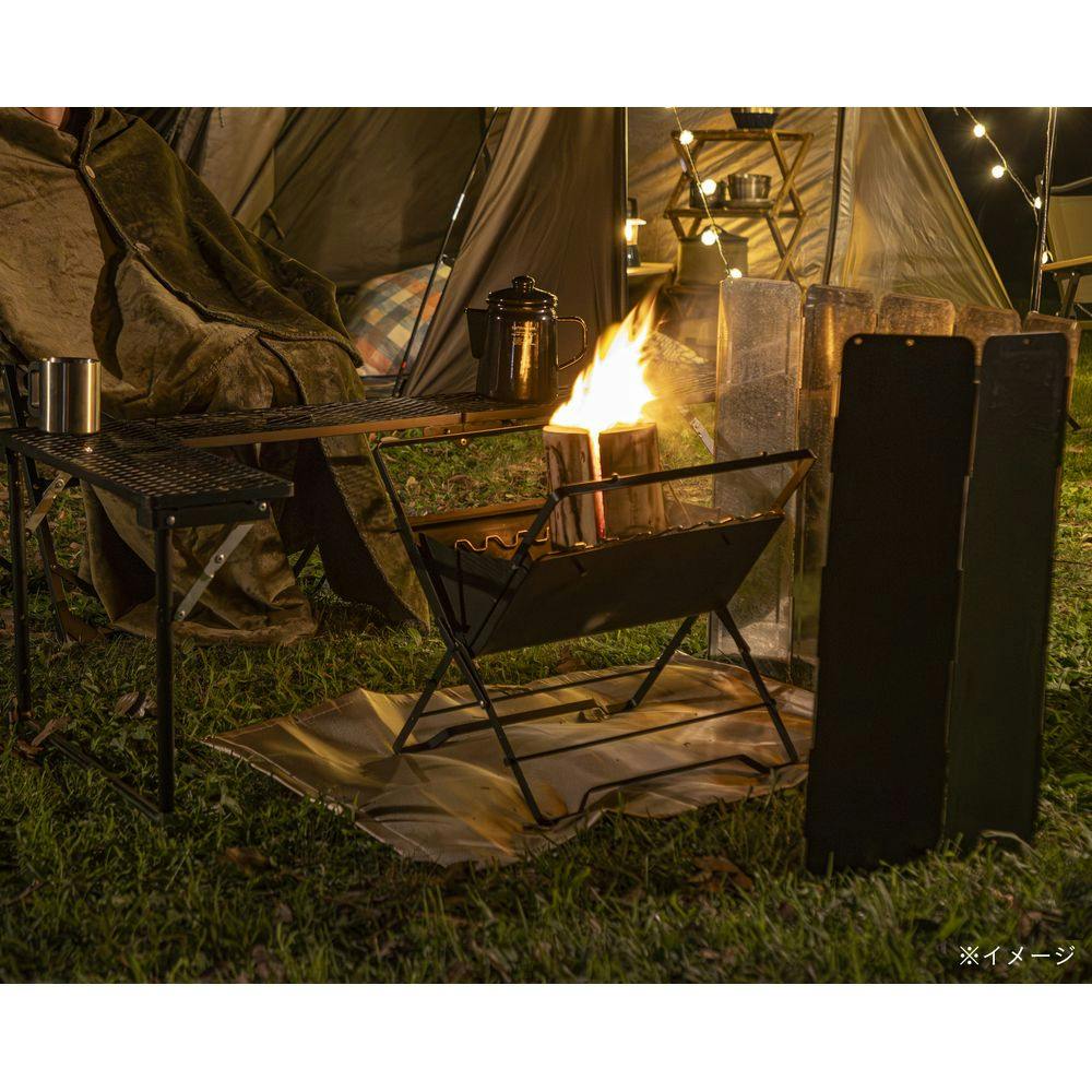 風の影響で火が消えるのを防ぎ、輻射熱(ふくしゃねつ)で暖かく、反射で手元が明るくなる。片面を黒にすることでキャンプシーンでの景観を損ねないカラー