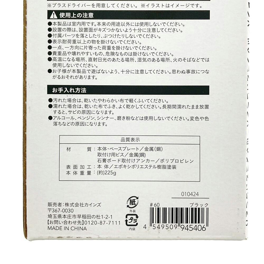 静耐荷重:(約) 3kg(石膏ボード) (約)5kg(木部)