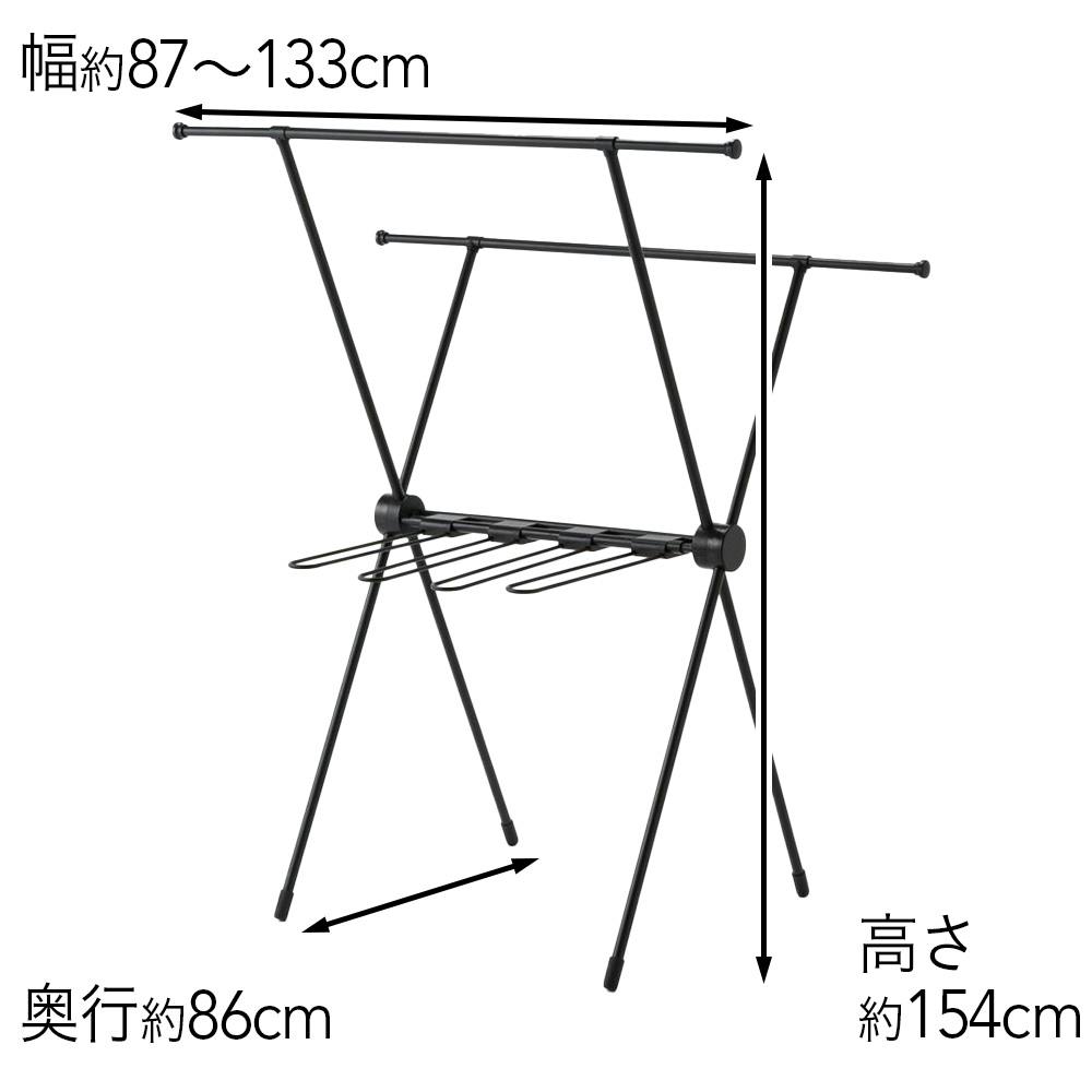 ロング丈も掛けられる乾きやすいX型室内物干し ブラック