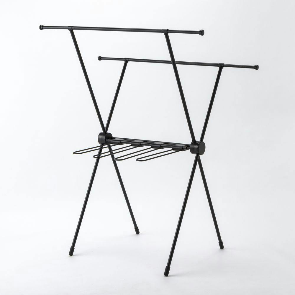 • ロング丈も掛けられる乾きやすいX型室内物干し ブラック