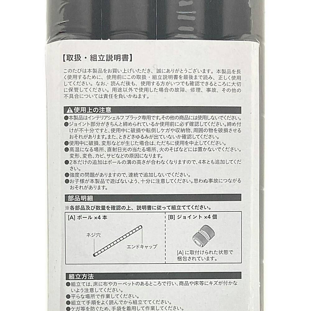 インテリアシェルフ専用延長ポール ブラック 30cm×4本