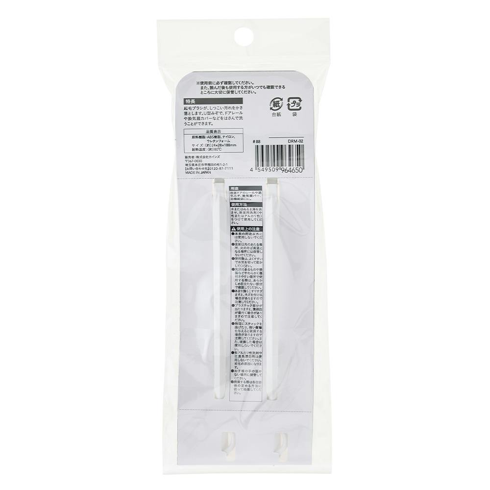 ●起毛ブラシが、しつこい汚れをかき落とします。●U型みぞで、ドアレールや換気扇カバーなどをはさんで洗うことができます。
