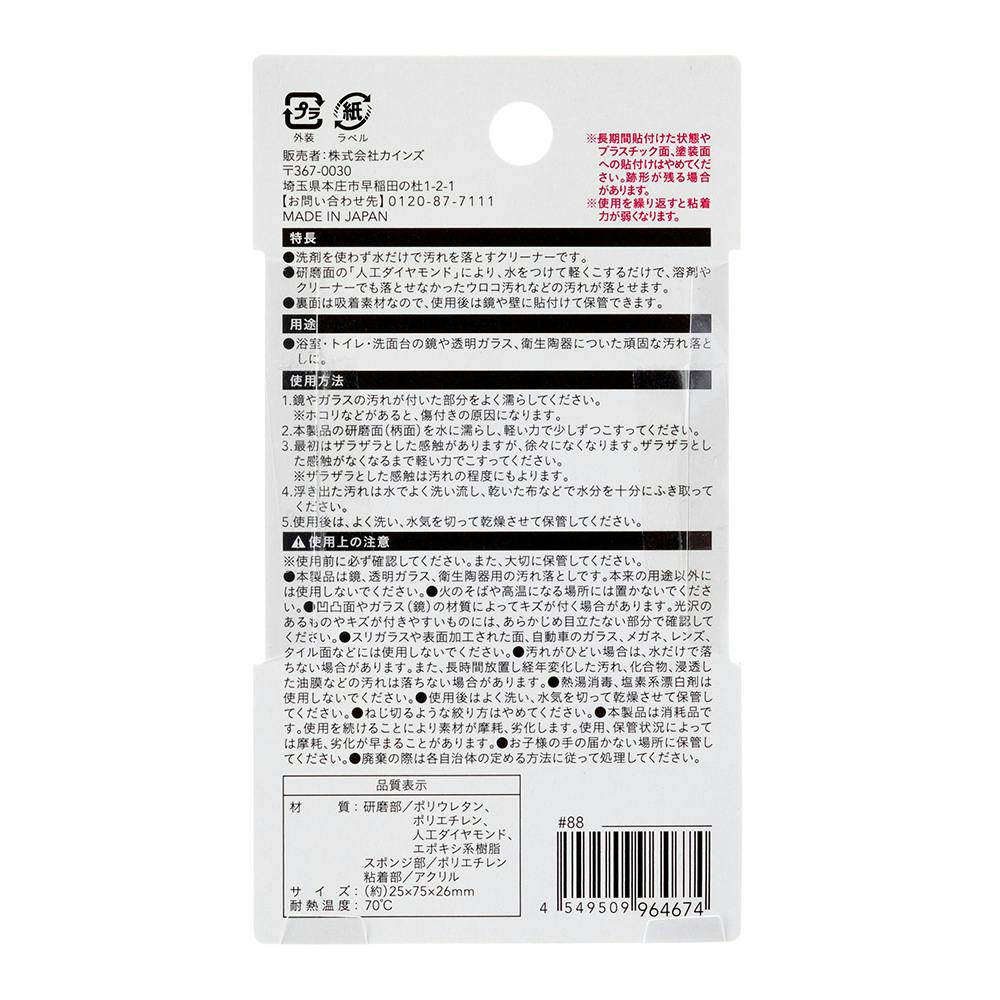 鏡やガラスの頑固な汚れを落とす。吸着面で貼り付けて収納できる。