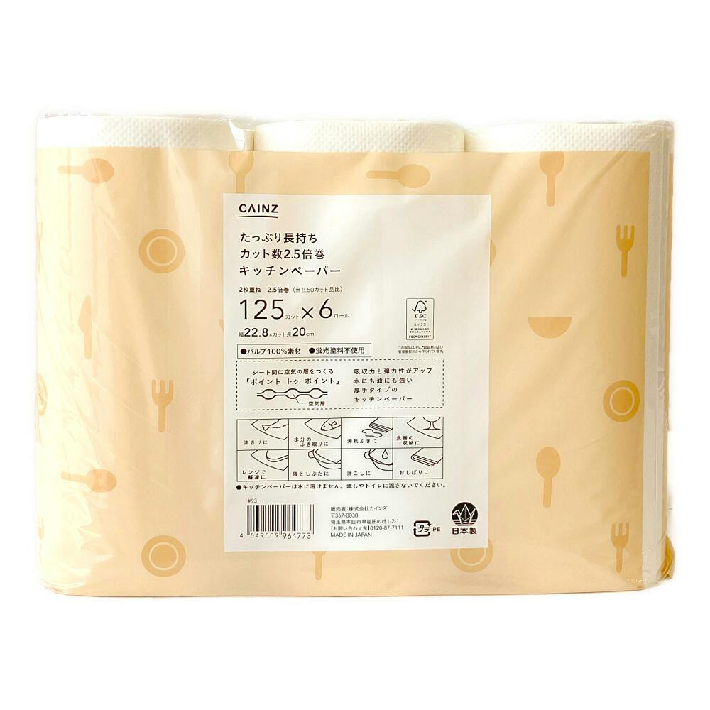 カインズ キッチンペーパー 2.5倍巻 6ロール