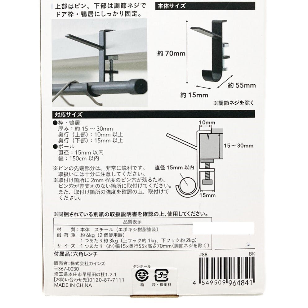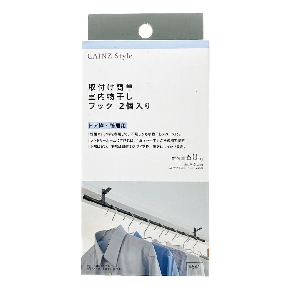 ●鴨居やドア枠を利用して、不足しがちな物干しスペースに ●ランドリールームに付ければ、「洗う→干す」がその場で完結 ●上部はピン、下部は調整ネジでドア枠・鴨居にしっかり固定 ●2個入り