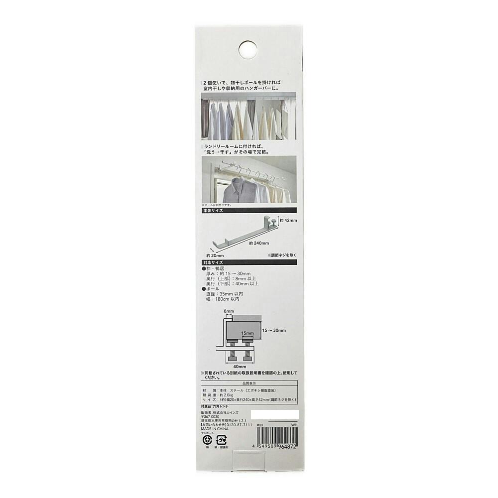 ●鴨居やドア枠を利用して、不足しがちな物干しスペースに ●ランドリールームに付ければ、「洗う→干す」がその場で完結 ●2つの調節ネジでドア枠・鴨居にしっかり固定 ●2個使いで、物干しポールを掛ければ室内干しや収納用のハンガーバーに