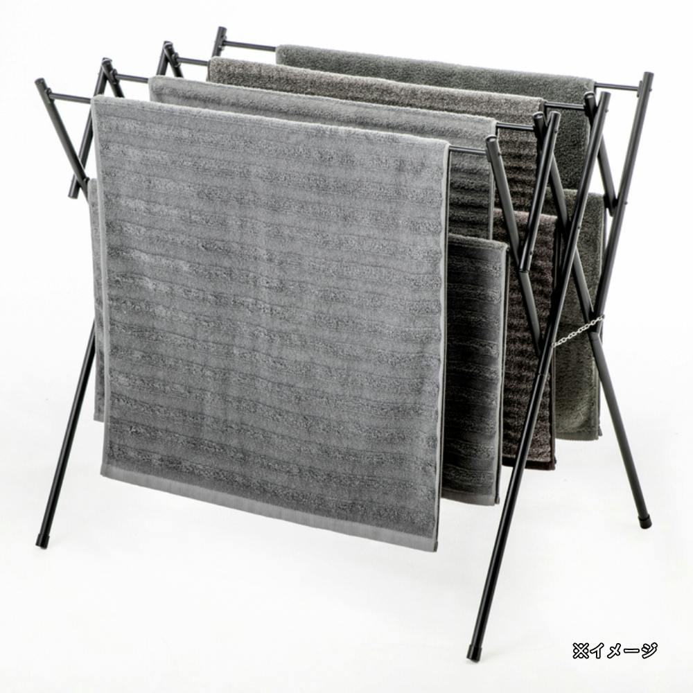 バスタオルも掛けられる伸縮式タオルハンガー ブラック