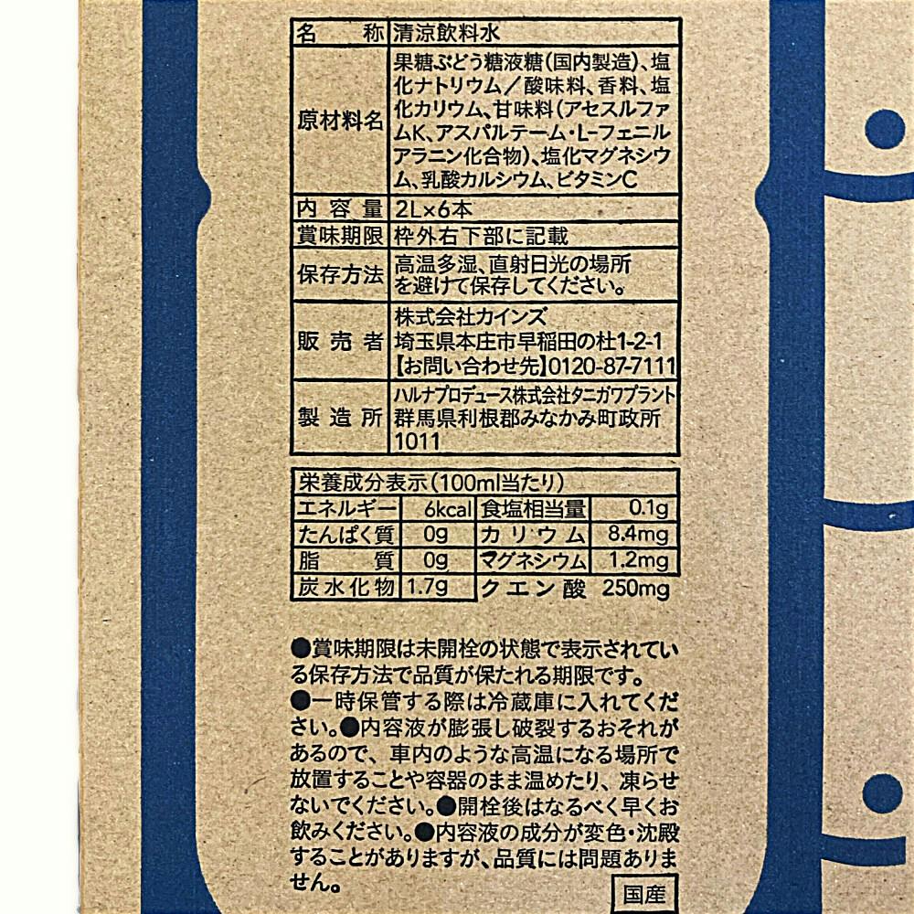 果糖ぶどう糖液糖(国内製造)、塩化ナトリウム/酸味料、香料、塩化カリウム、甘味料(アセスルファムK、アスパルテーム・L-フェニルアラニン化合物)、塩化マグネシウム、乳酸カルシウム、ビタミンC