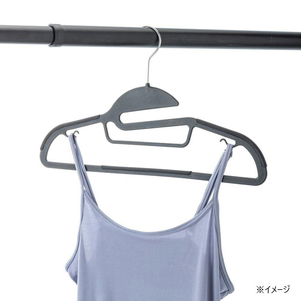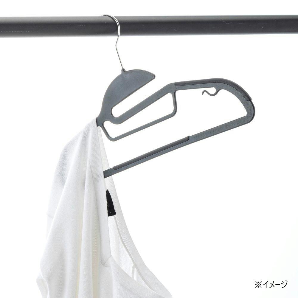●衣類が滑りにくい。肩部2か所、ズボン掛け部1か所の滑り止め付き。●襟元がのびにくい。●ネクタイ・スカーフを掛けられる。●内側フックにキャミソールなどのインナーを干せる。