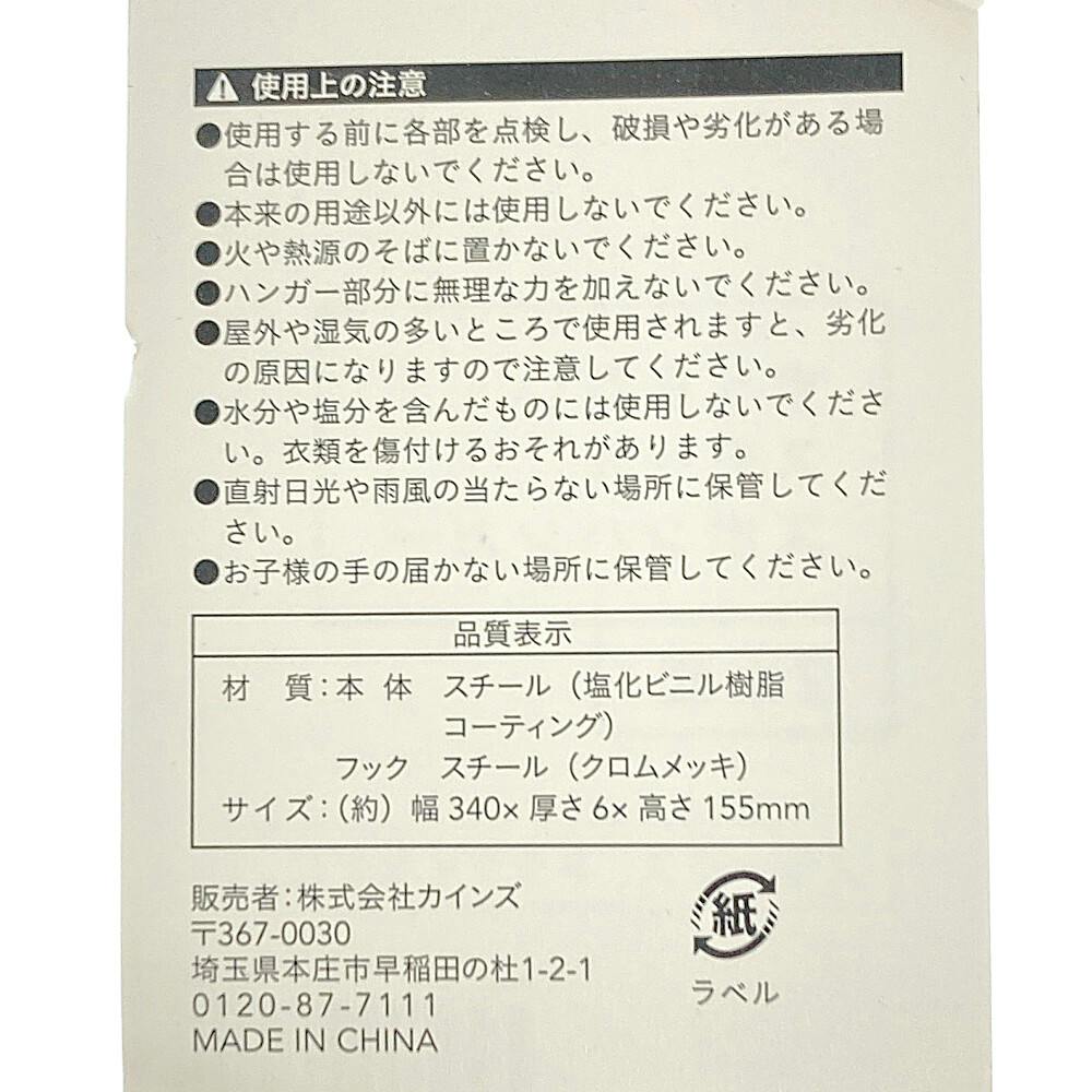 ●フック:スチール(クロムメッキ) ●本体:スチール(塩化ビニル樹脂コーティング)