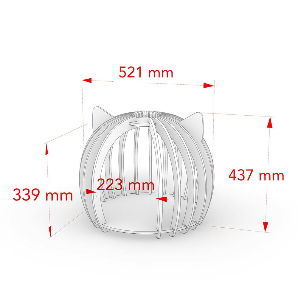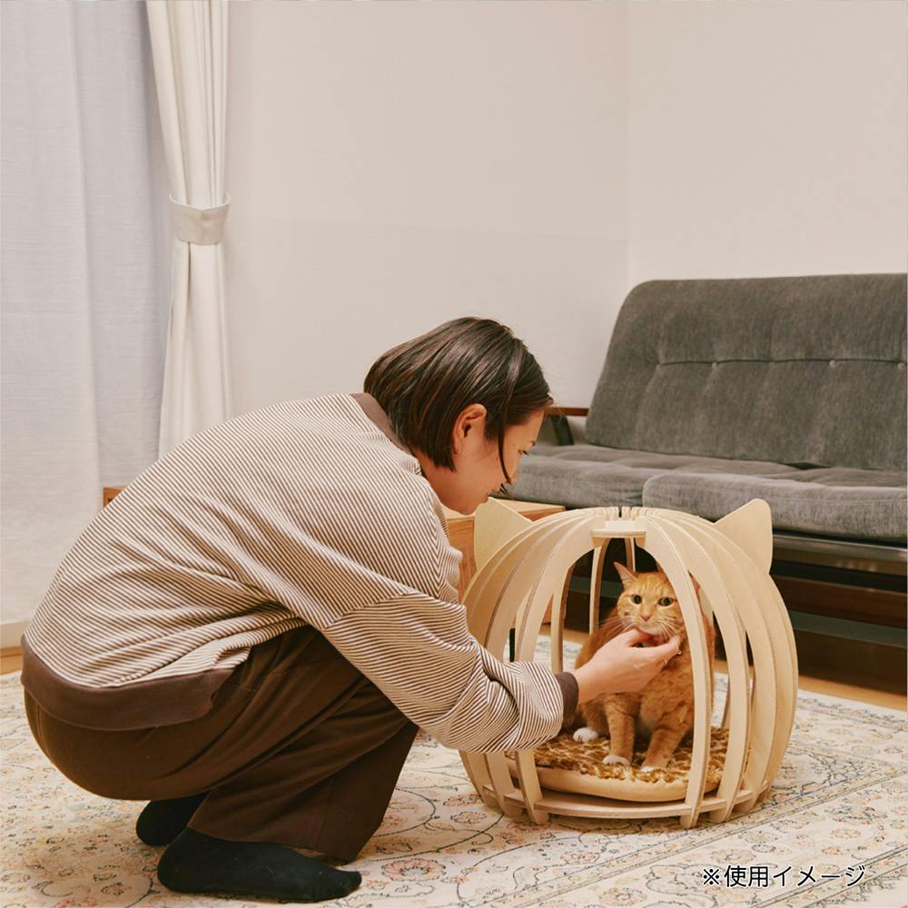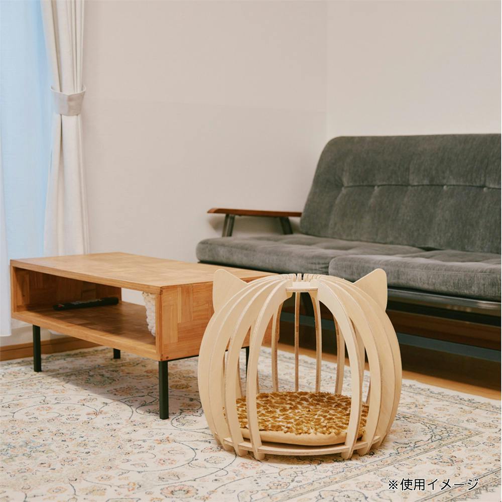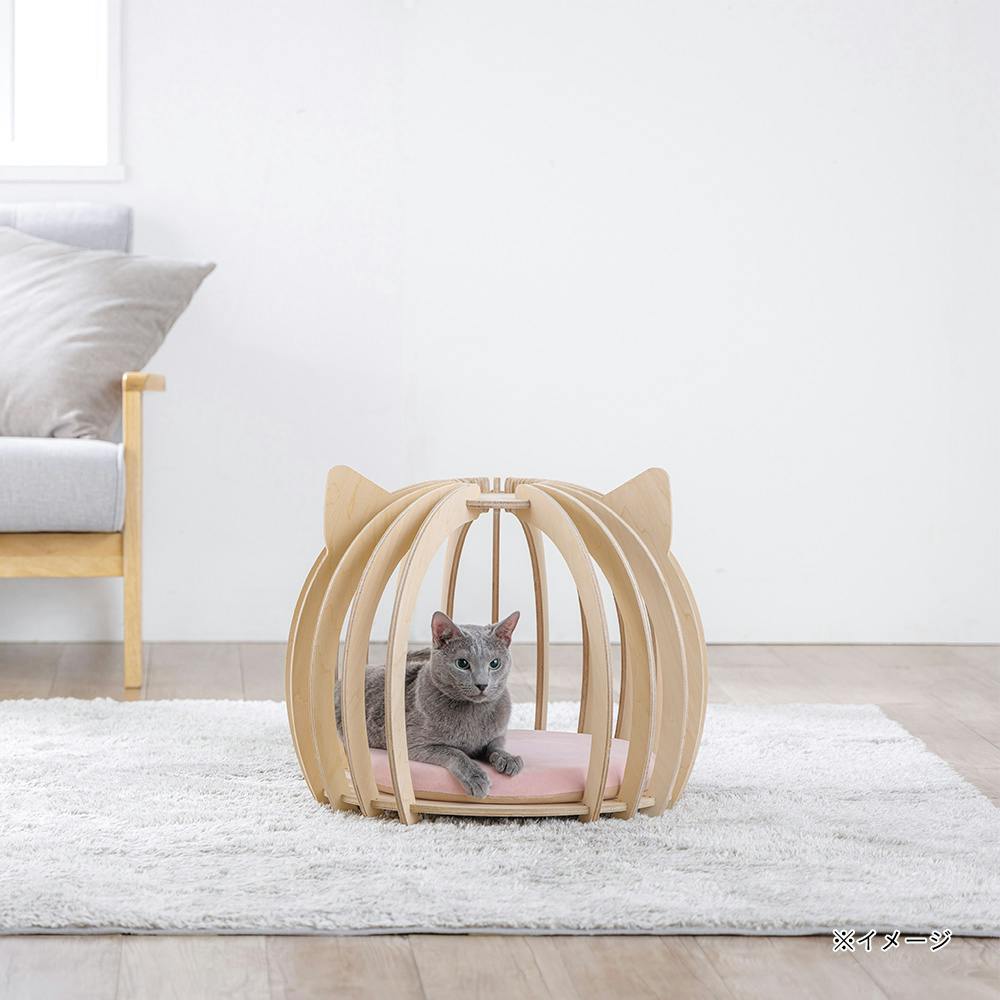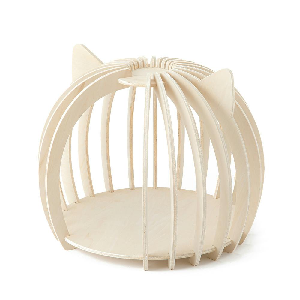 ShopBotの加工技術を活かし、猫耳の形をあしらった猫用のベッド用スペースです。 中にお好みのクッションなどを入れて使うと、より心地よい空間になります。