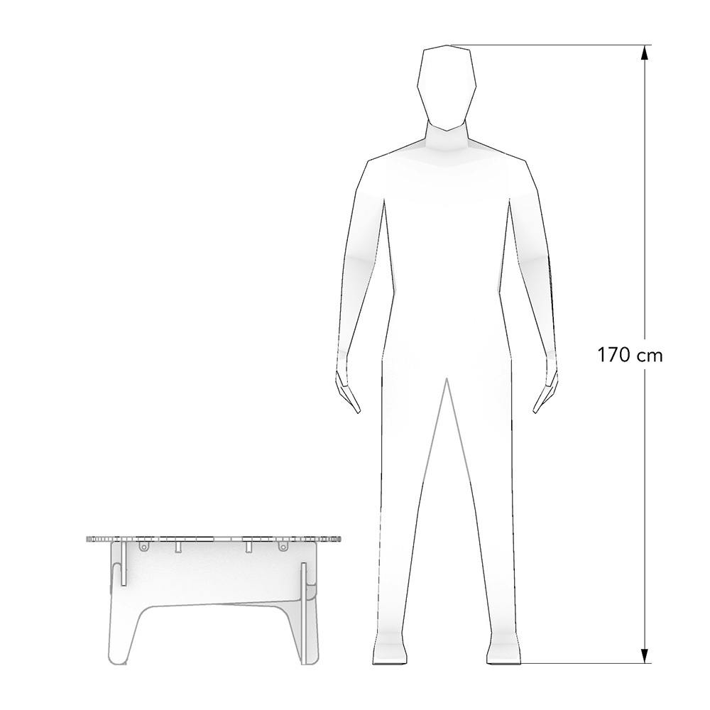 テーブルの中央に七輪を置くことができます。コンパクトにまとめられて、持ち運びが可能です。木材はラーチ合板です。
