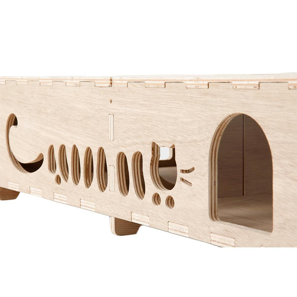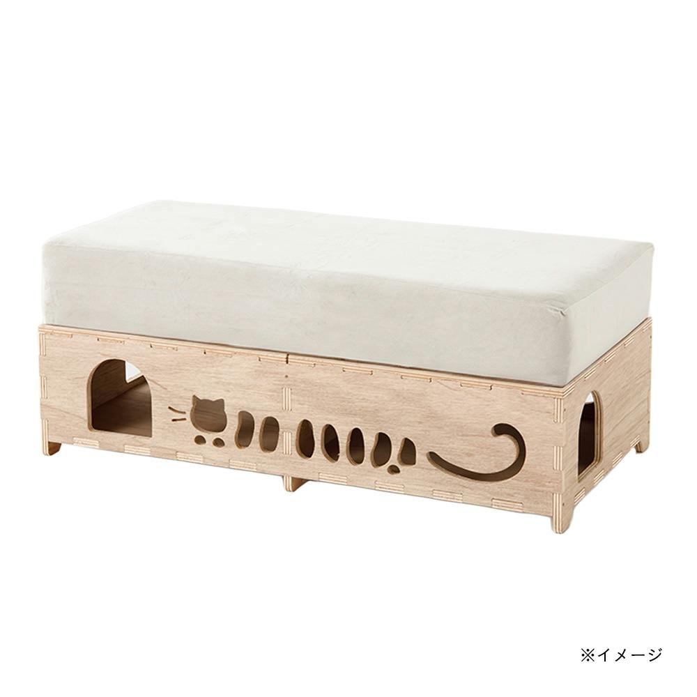 ShopBotの加工技術を活かし、座面・側面に猫柄を施したベンチです。座面の下は、愛猫が遊べるトンネルになっています。座面に「ブロックソファ 中材 60×120×18cm(別売)」がぴったり収まります。ラワン合板バージョンになります。