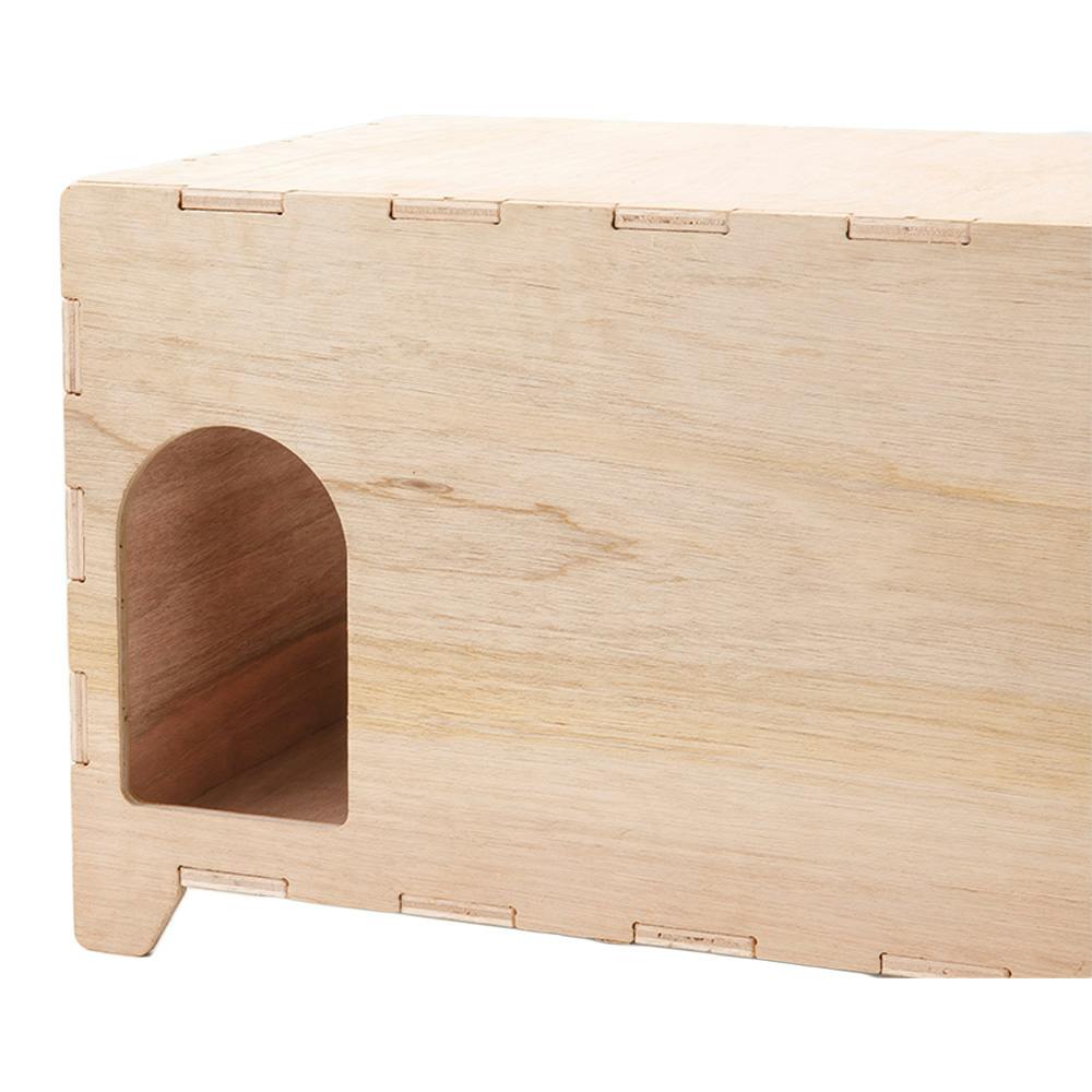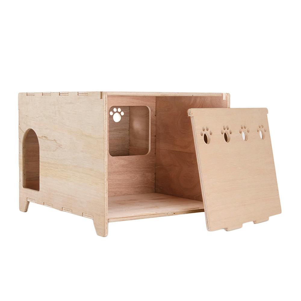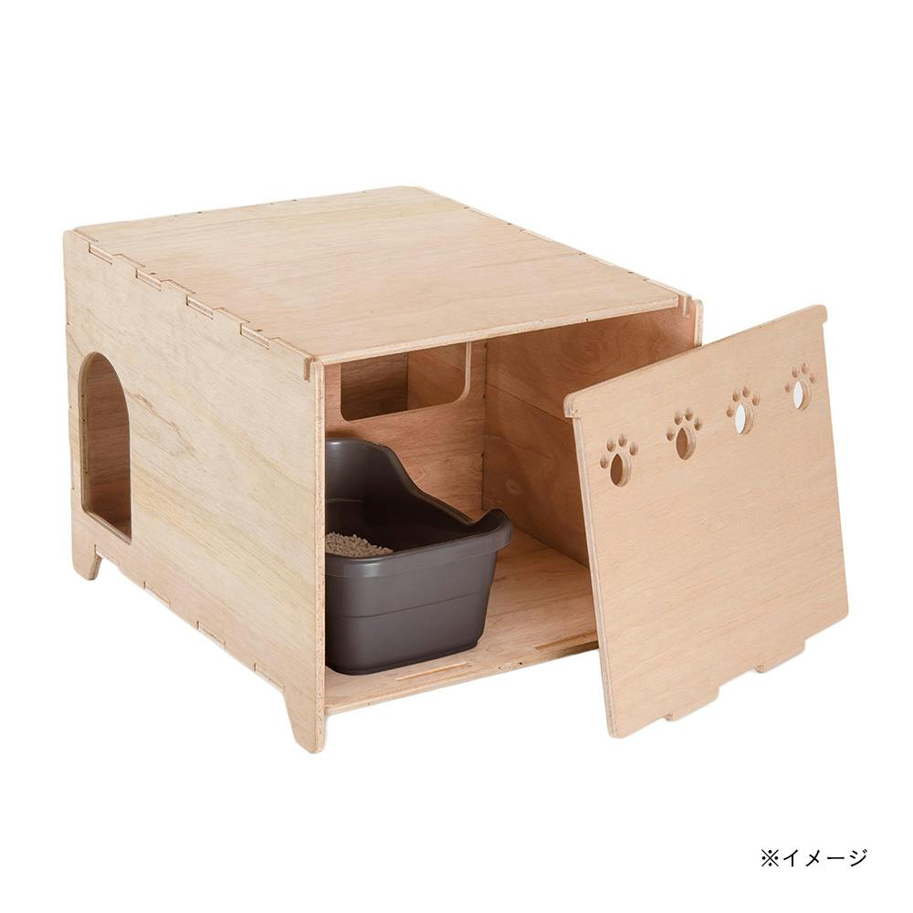 ShopBotの加工技術を活かし、猫の肉球をあしらった猫用のトイレ用スペースです。ラワン合板バージョンになります。