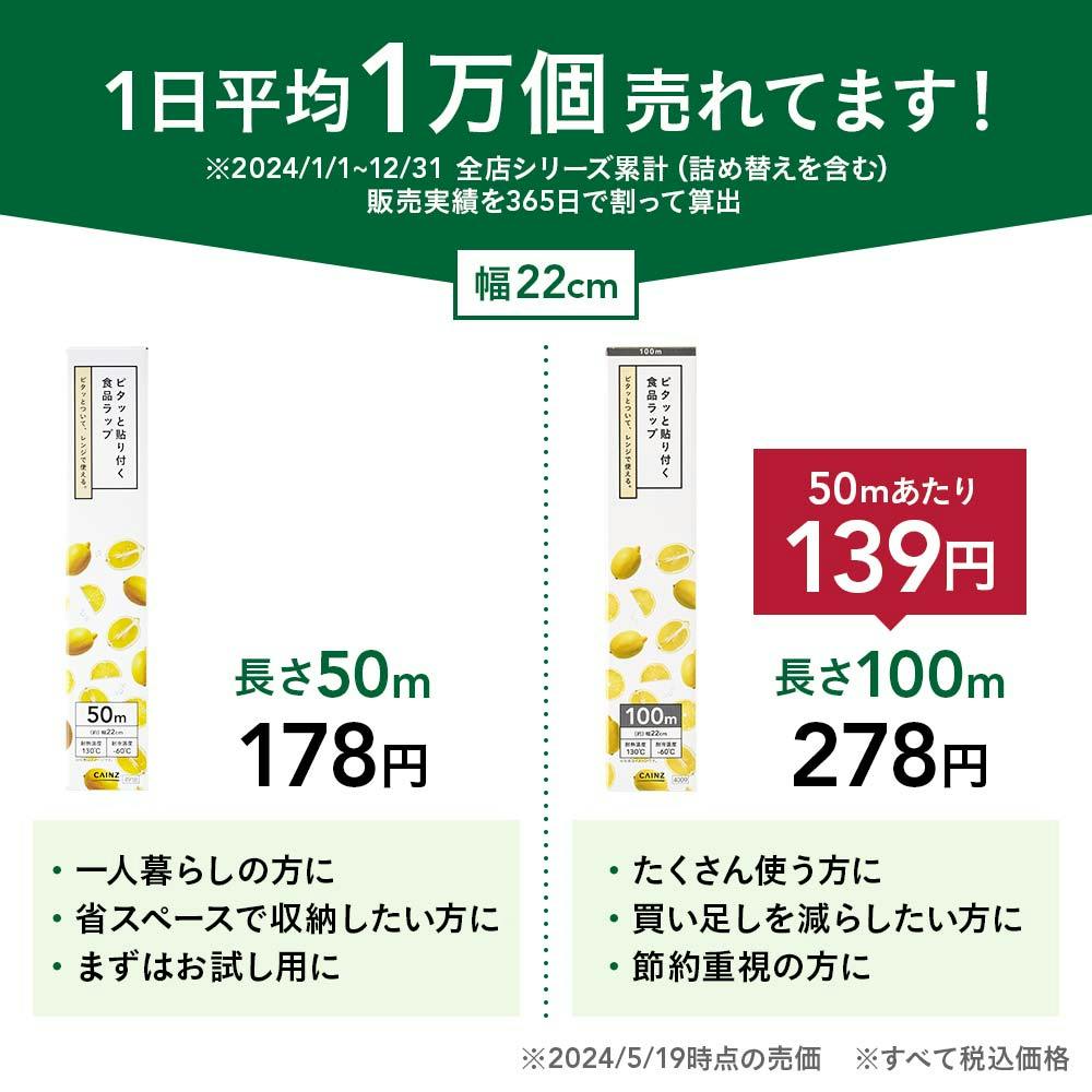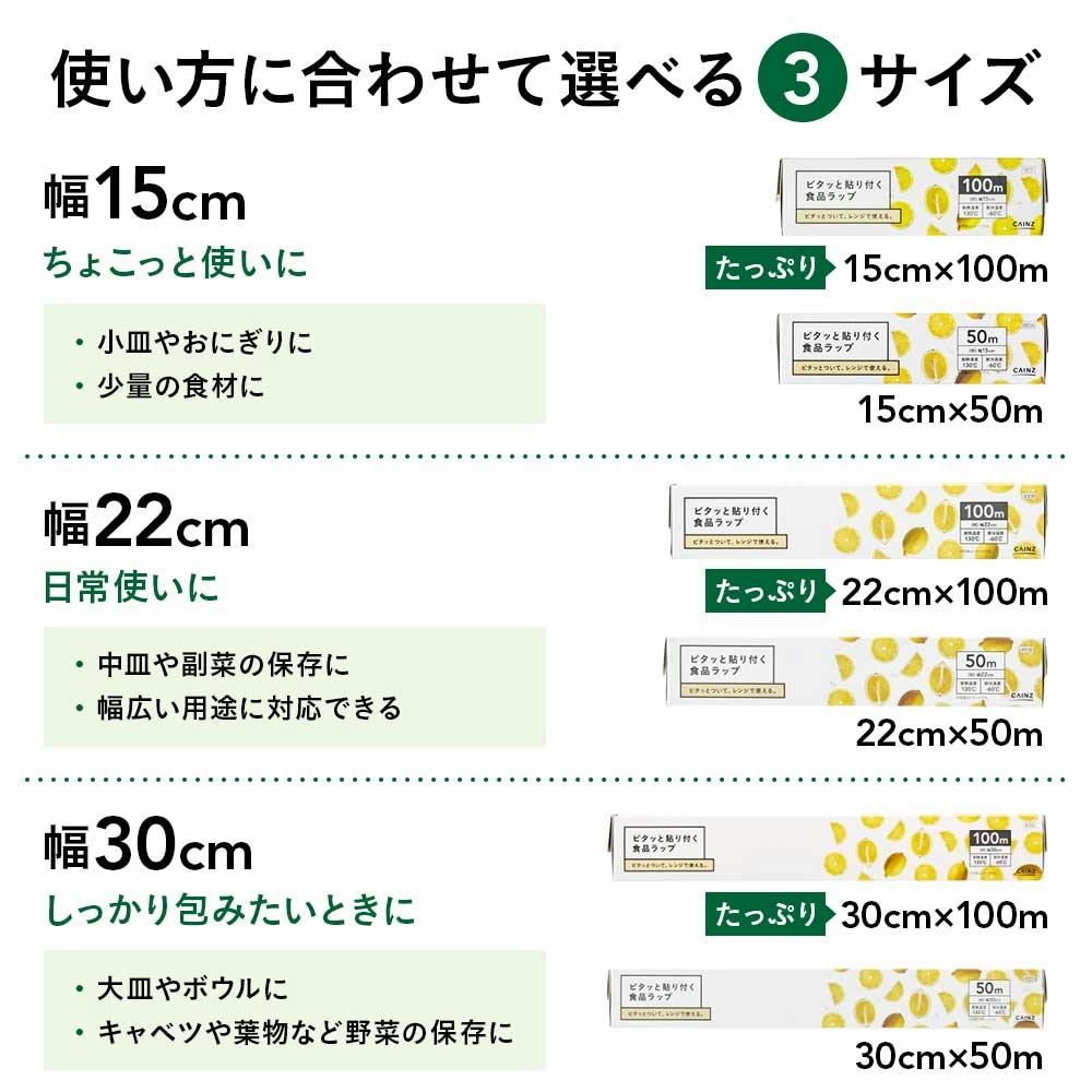 ●ピタッとついて、レンジで使える ●ピッと切れてピッタリ付く/使いやすさで調理をサポート ●電子レンジにも使用可能/耐熱温度130℃、耐冷温度-60℃で加熱・冷凍・冷蔵に対応します ●外箱サイズ:(約)幅4.3×奥行4.3×高さ23.5cm