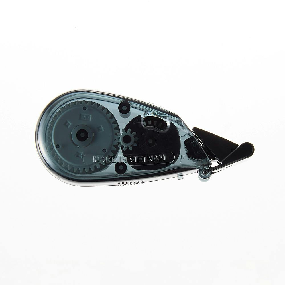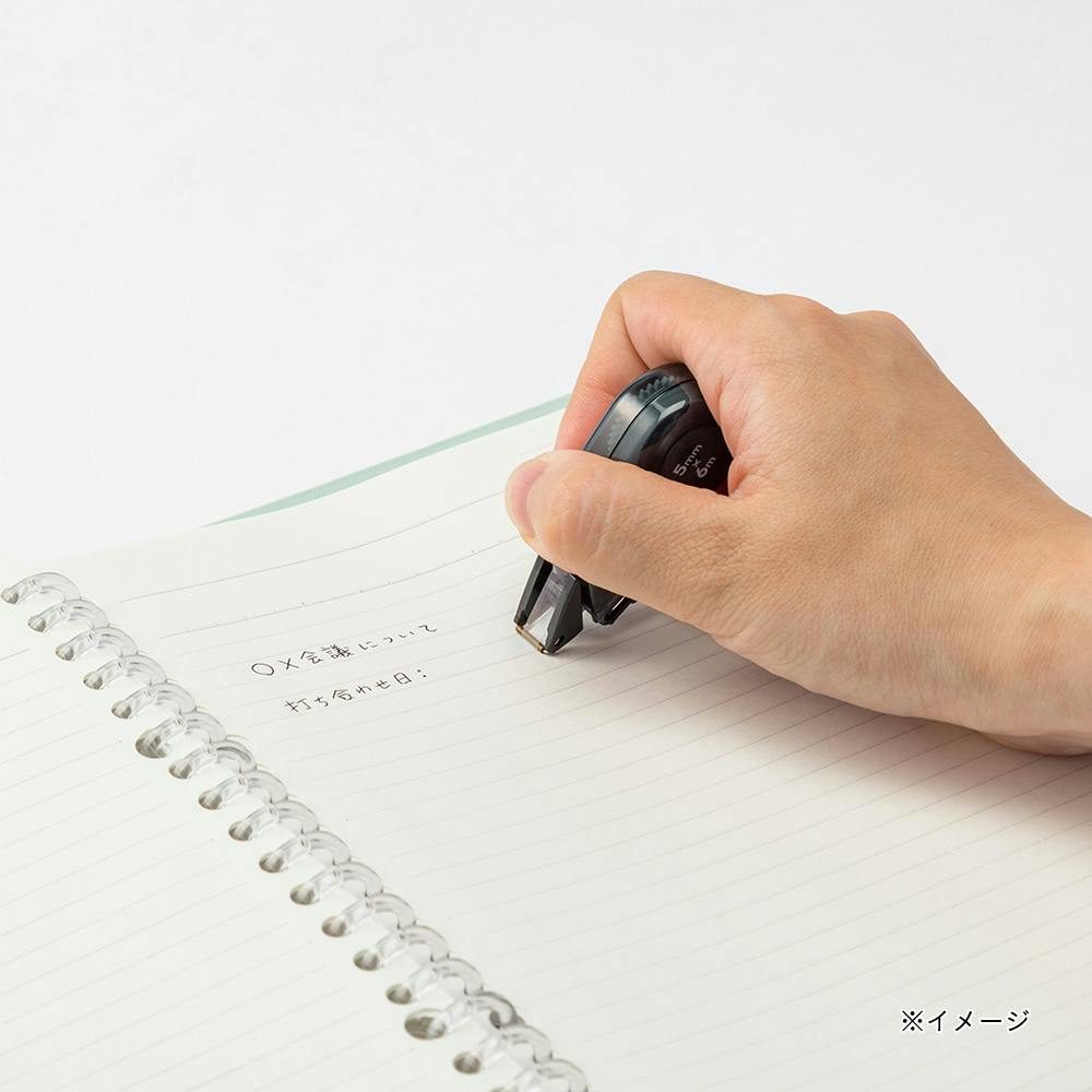 先端ローラーと手振れ防止ヘッドで消しやすい。薄く削れにくいテープで再筆記時も書きやすい。