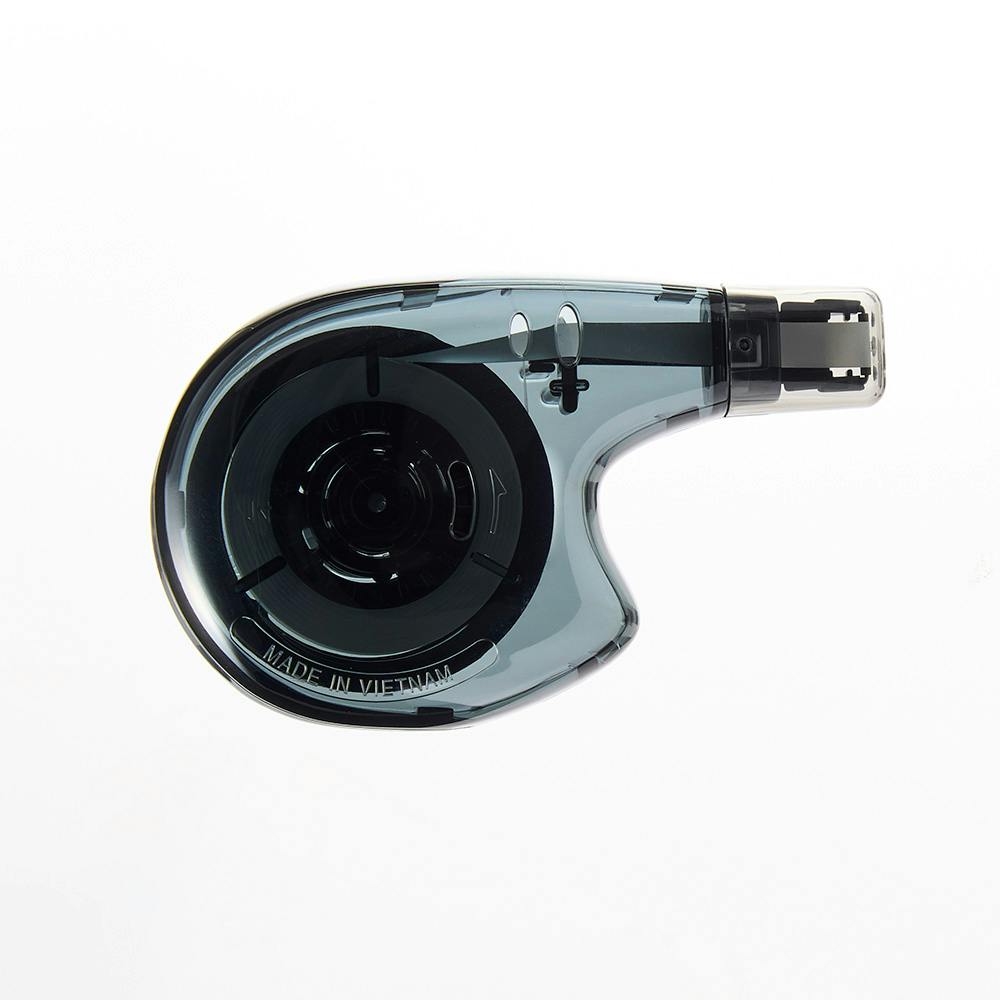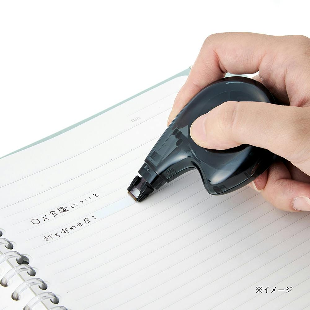 先端ローラーと手振れ防止ヘッドで消しやすい。薄く削れにくいテープで再筆記時も書きやすい。
