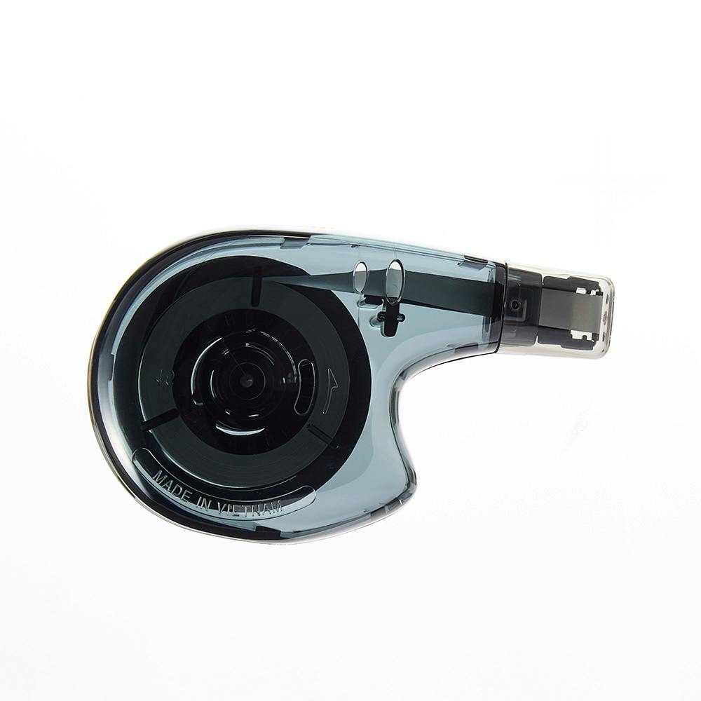 先端ローラーと手振れ防止ヘッドで消しやすい。薄く削れにくいテープで再筆記時も書きやすい。