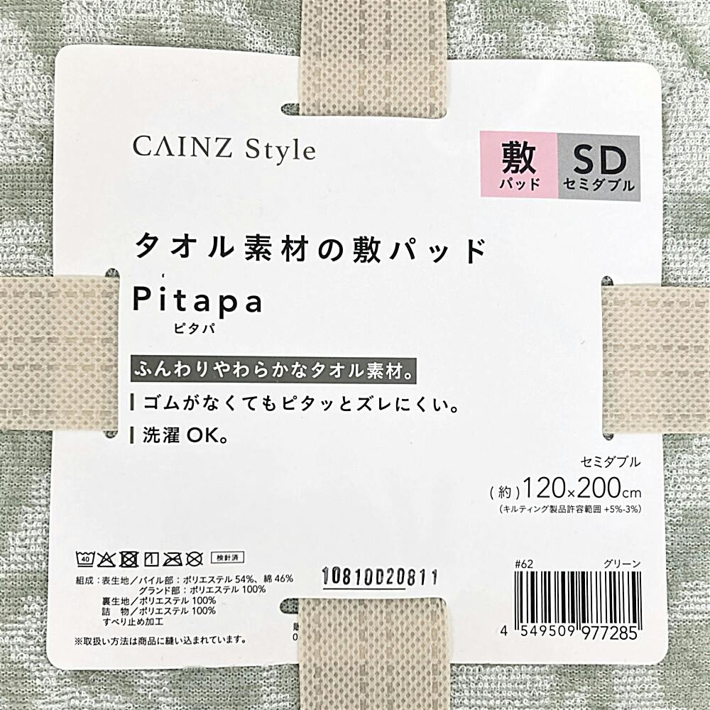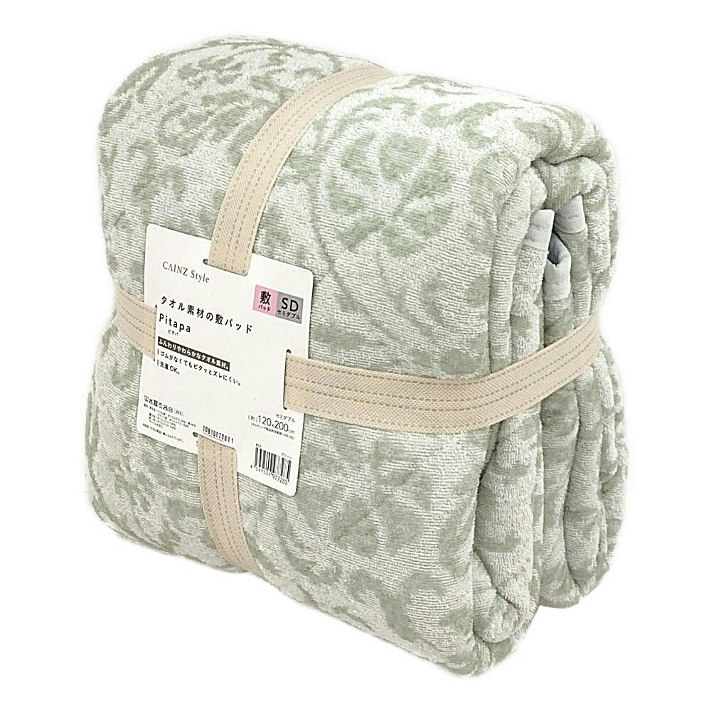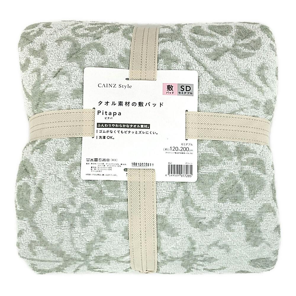 タオル素材の敷パッド Pitapa グリーン セミダブル 120×200cm