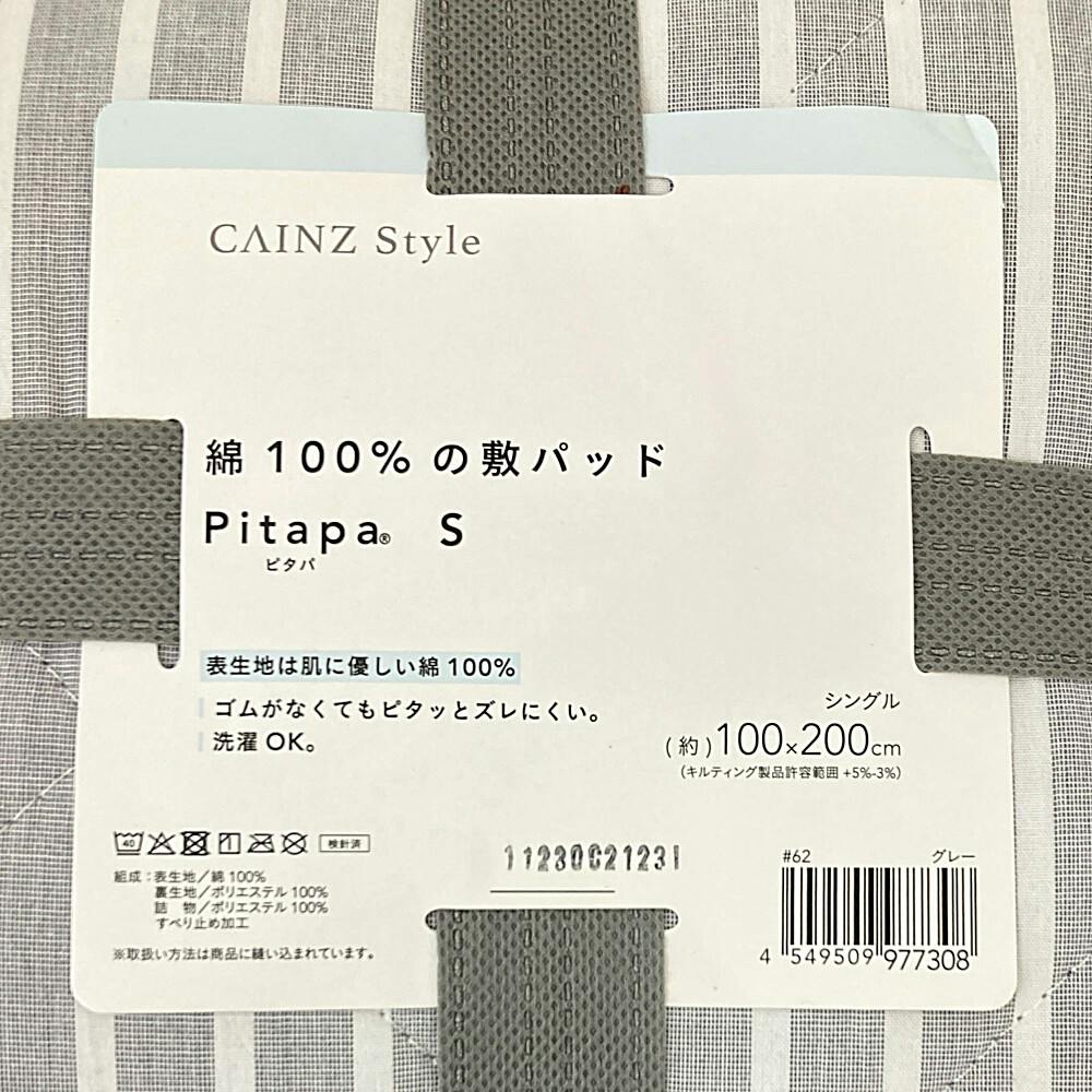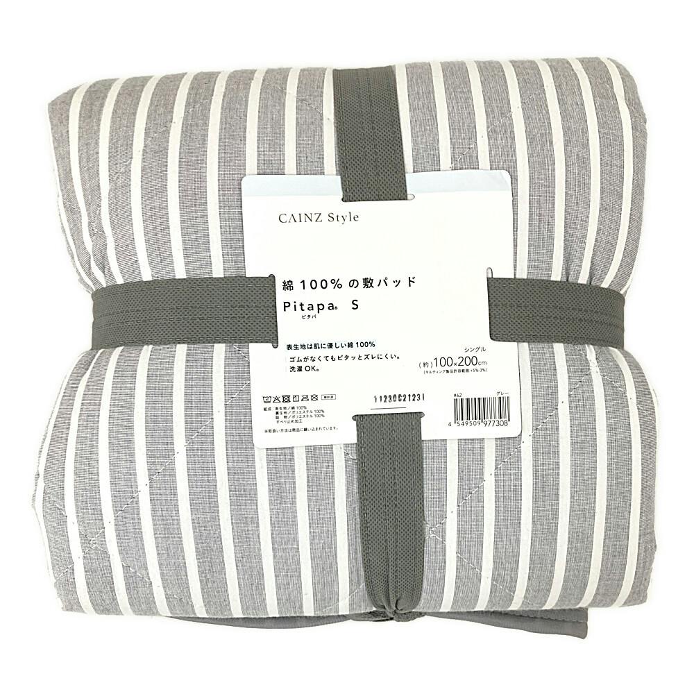 綿100%の敷パッド Pitapa グレー シングル 100×200cm