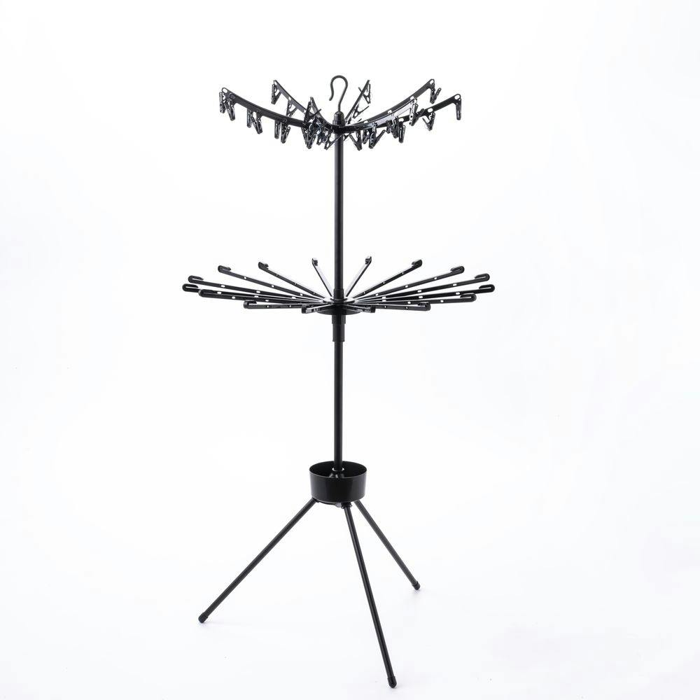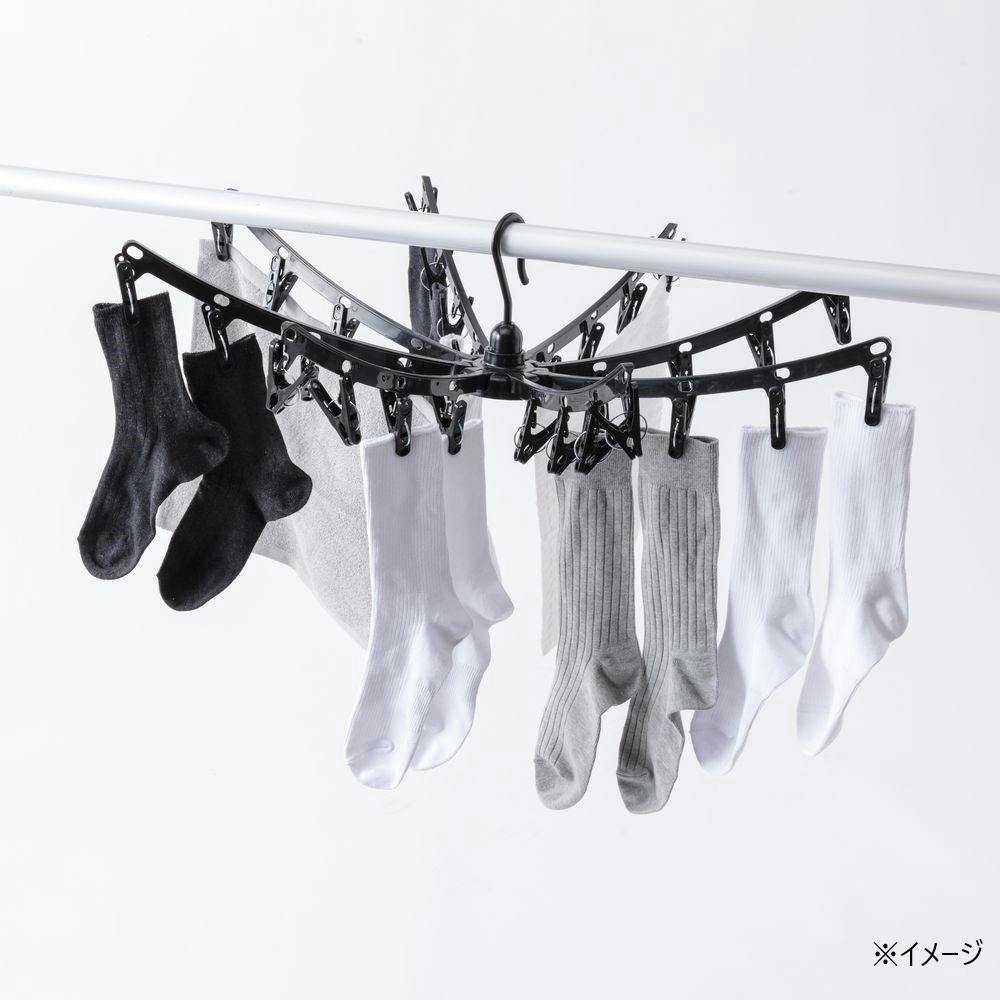 はずして使える ピンチハンガーつき パラソル型室内物干し ブラック