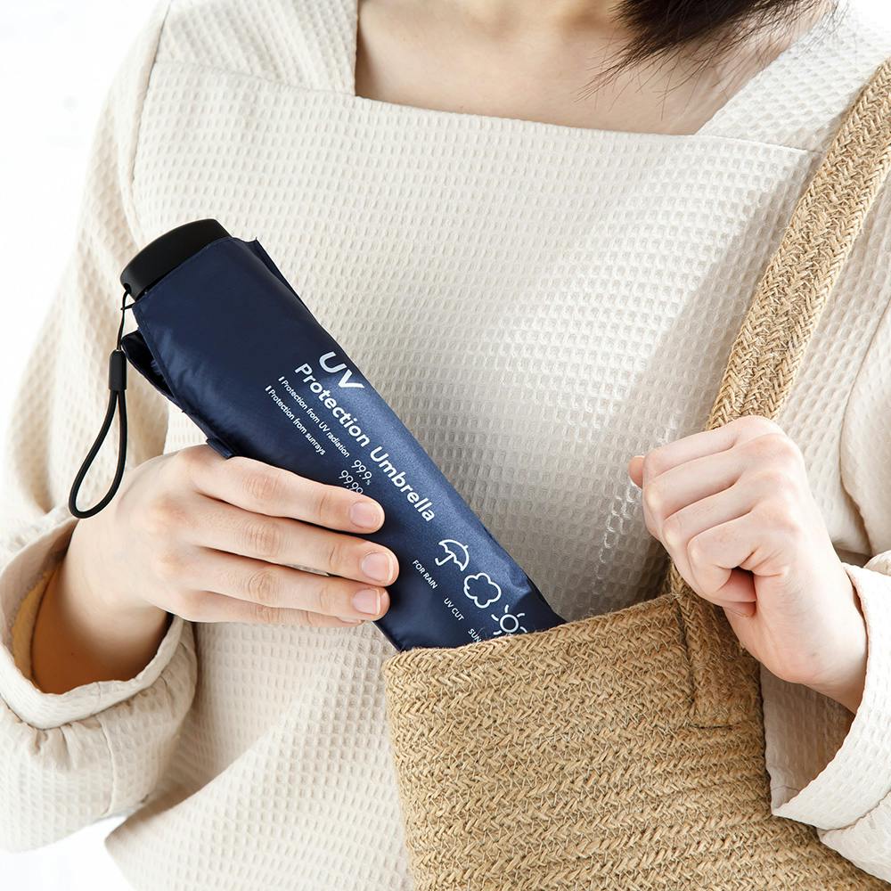 日差しも紫外線も雨も遮れる折傘 フラット 55cm ネイビー