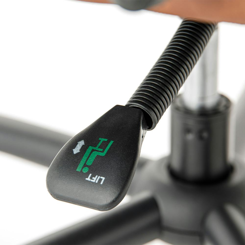 高さが変えられる背あてクッション付き、フローリングが傷つきにくいキャスター、無段階リクライニング機能、座面の高さを調節できる