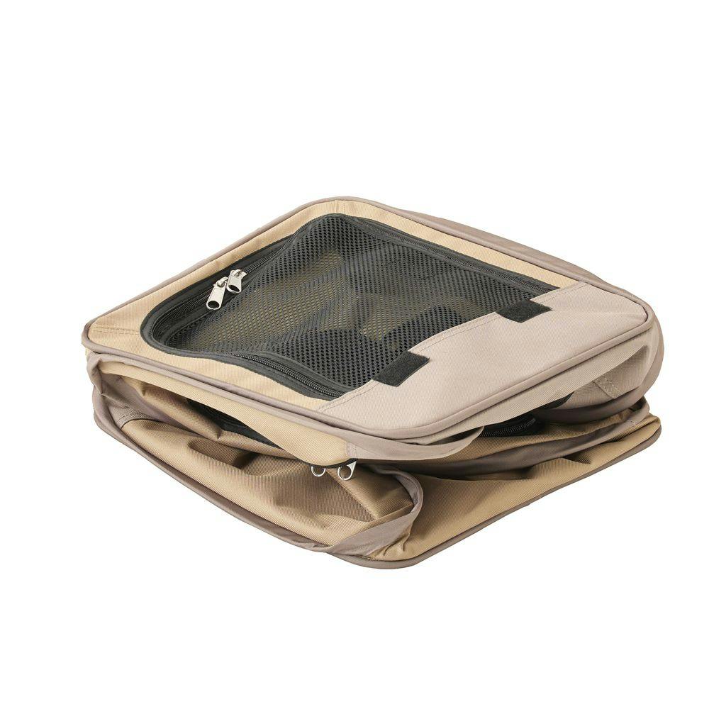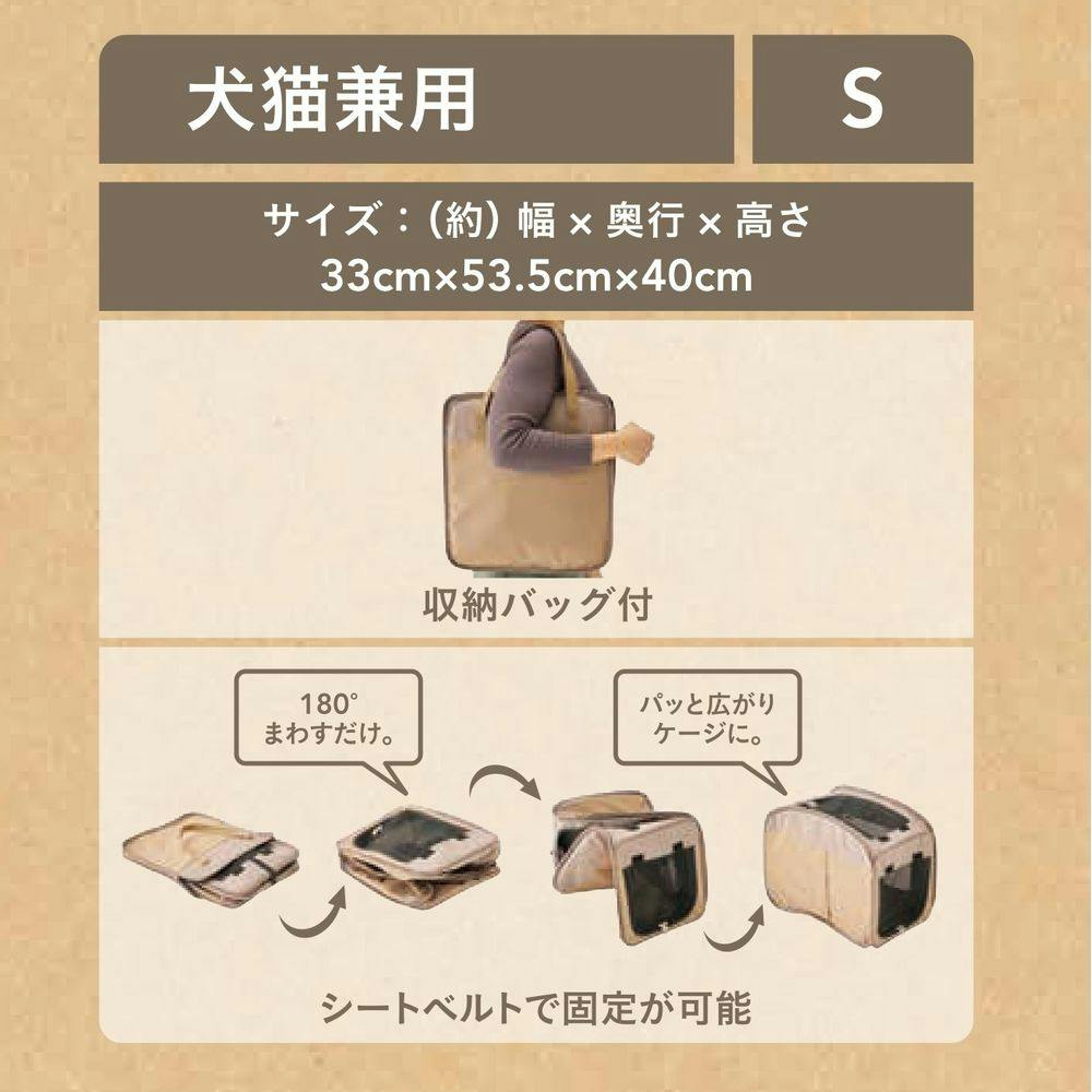 コンパクトに畳んで収納できるバッグ付き。通気性の良い、メッシュ窓。飛び出し防止リード付き。