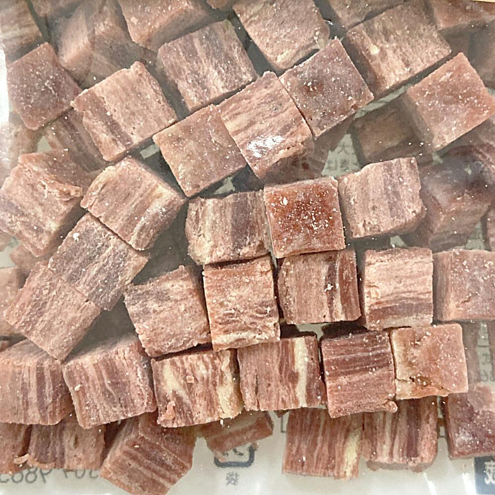 開封後は早めに与えてください。製品の表面に白い微粉が付着する場合がありますが、品質には影響ありません。お子様やペットの届かないところに保管し、犬以外には与えないでください。賞味期限の印字は左から4桁は西暦を表し、以下4桁は月を表示しています。