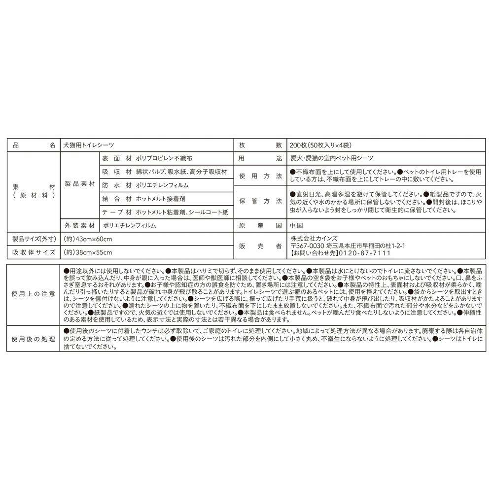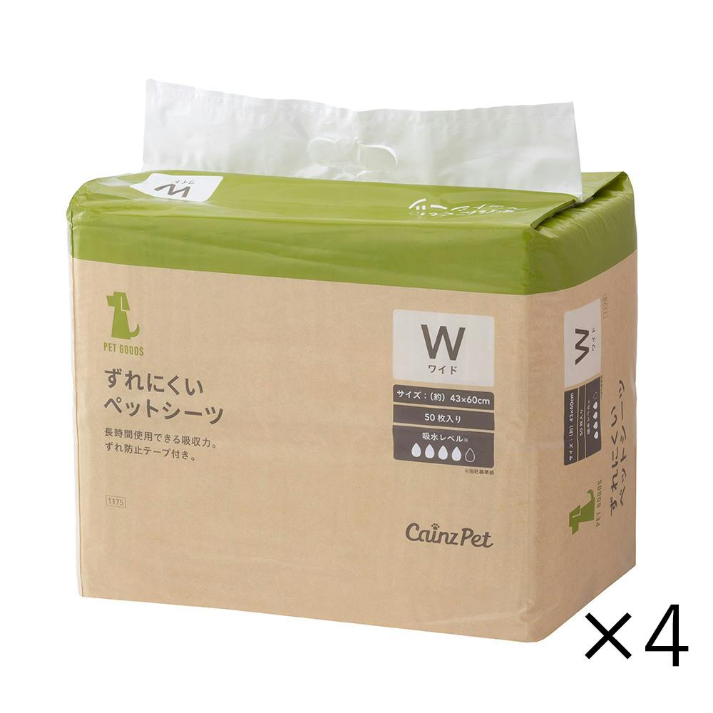 【ケース販売】カインズ ずれにくいペットシーツ ワイド 50枚×4個入 犬用 中型犬約2回分おしっこ吸収 ずれ防止テープ付き
