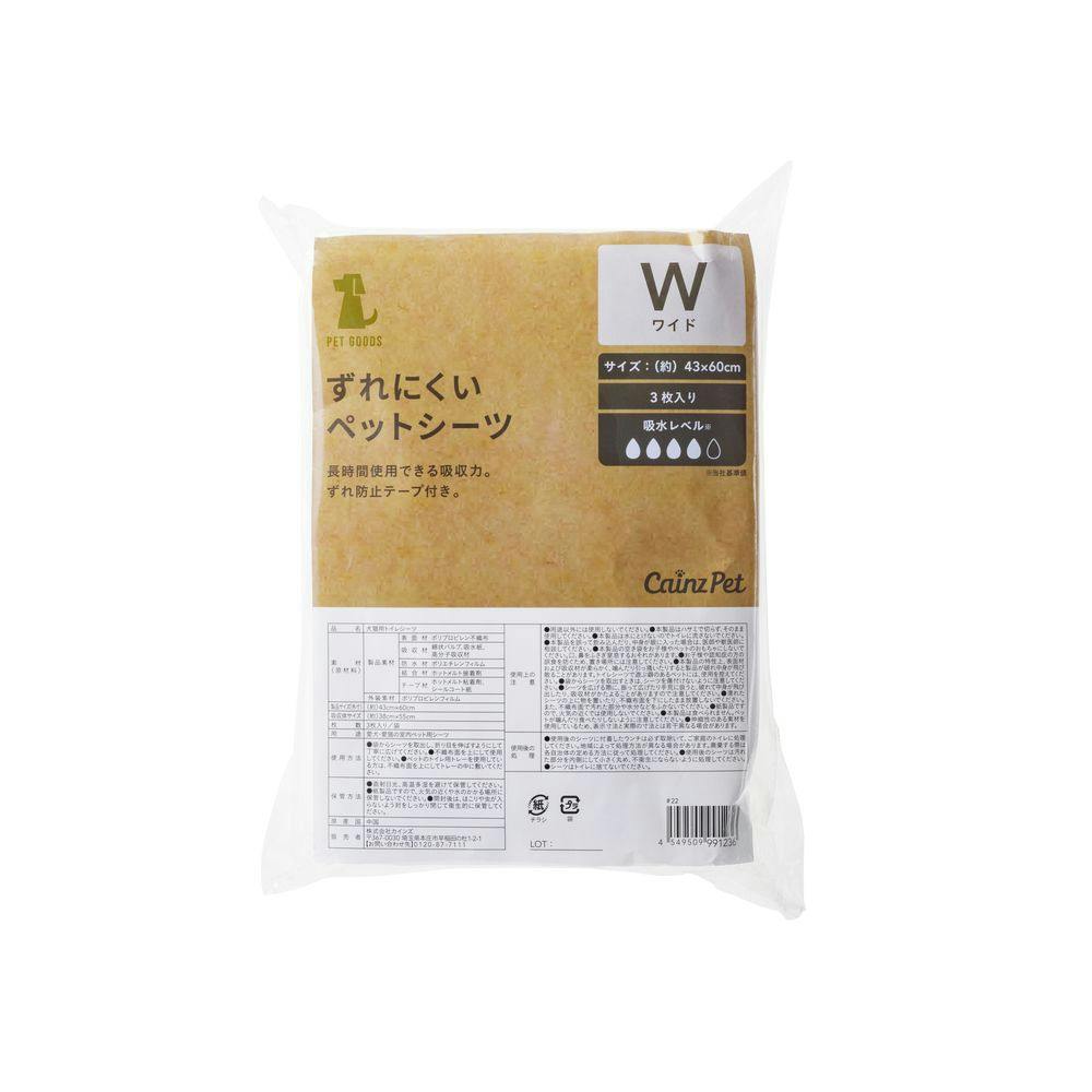 カインズ ずれにくいペットシーツ ワイドお試し 3枚 犬用 中型犬約2回分おしっこ吸収 ずれ防止テープ付き 厚型仕様 安心の吸水力
