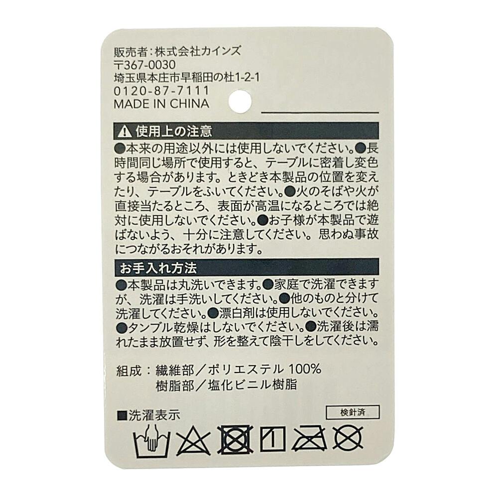 生地/ポリエステル100%、樹脂部/塩化ビニル樹脂