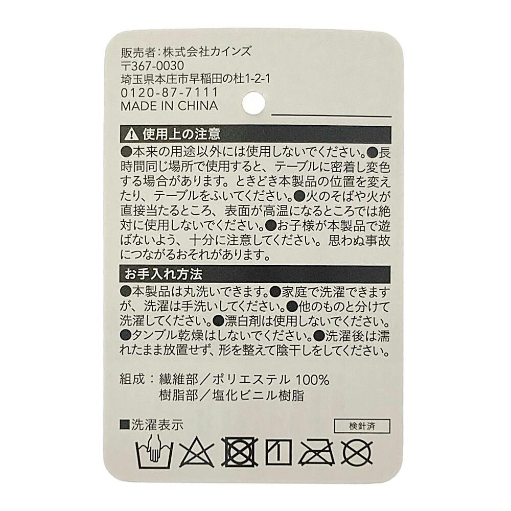 繊維部/ポリエステル100%、樹脂部/塩化ビニル樹脂