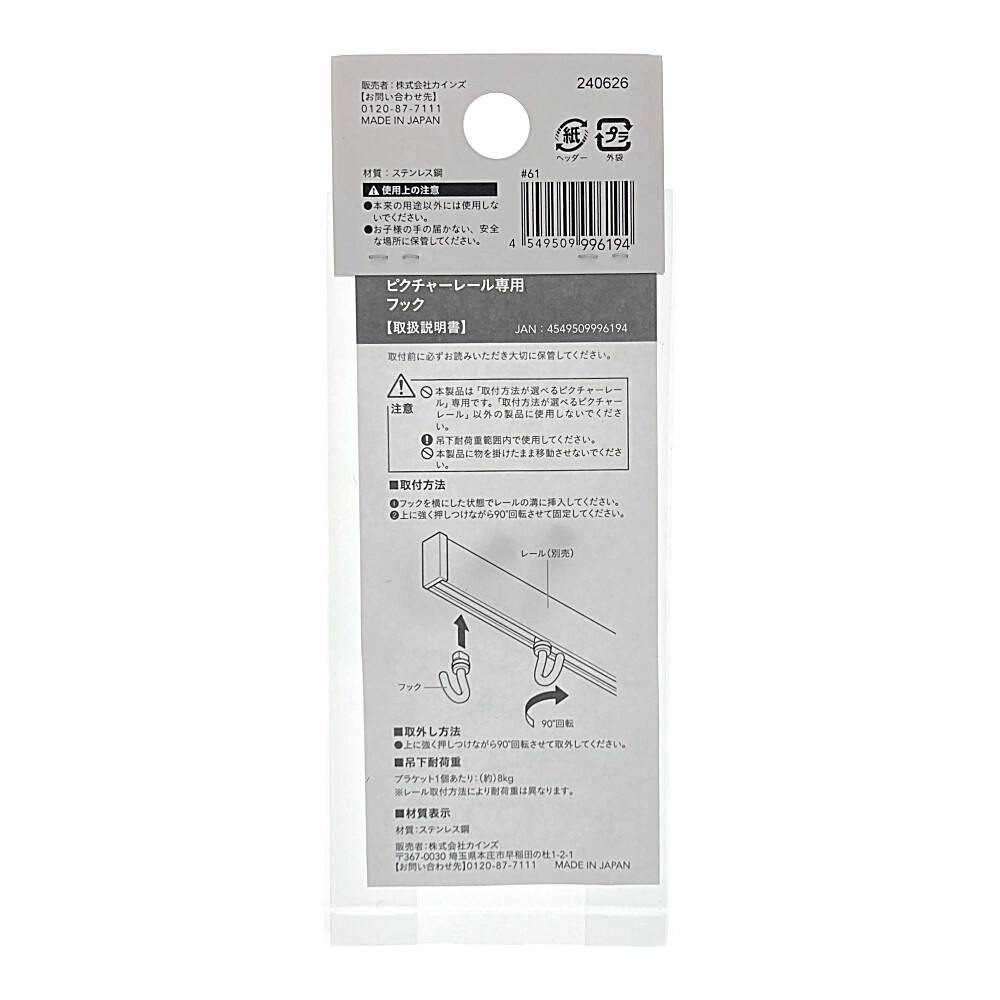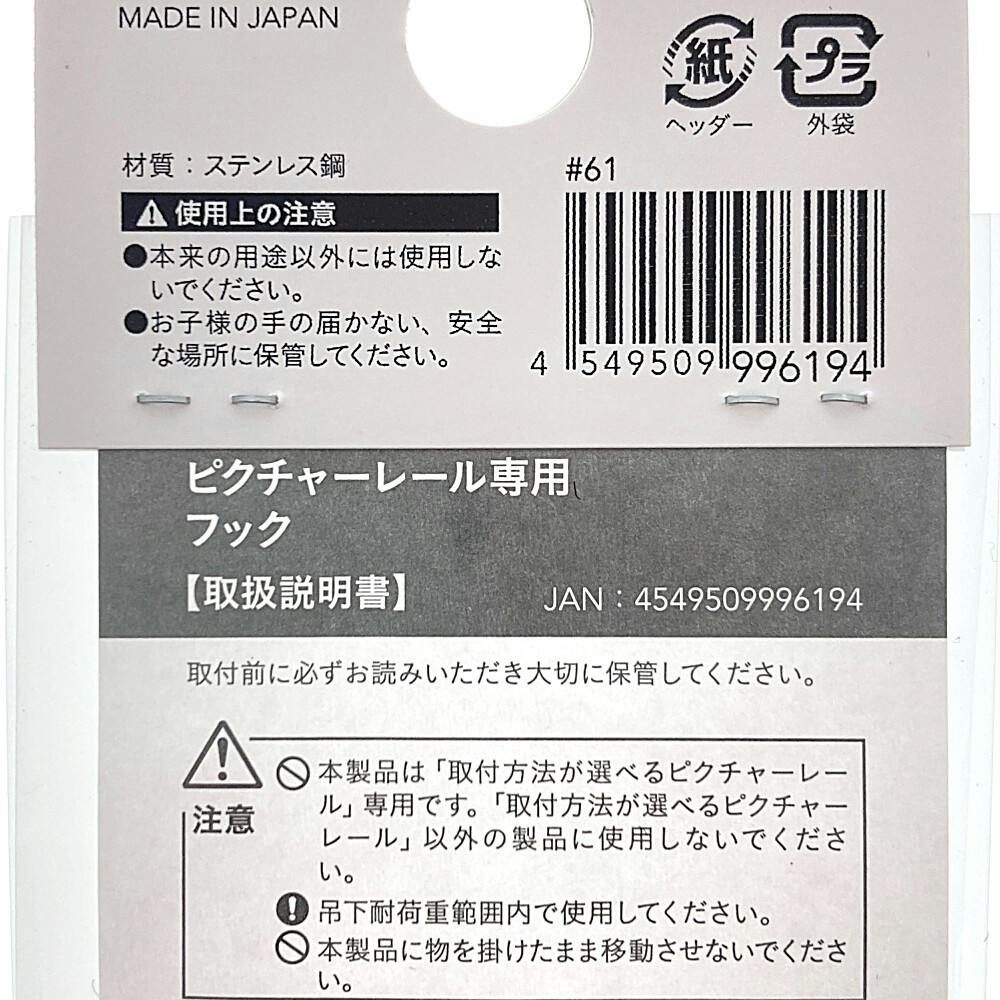 ●本製品は取付方法が選べるピクチャーレール専用です。取付方法が選べるピクチャーレール以外の製品に使用しないでください。吊下耐荷重範囲内で使用してください。