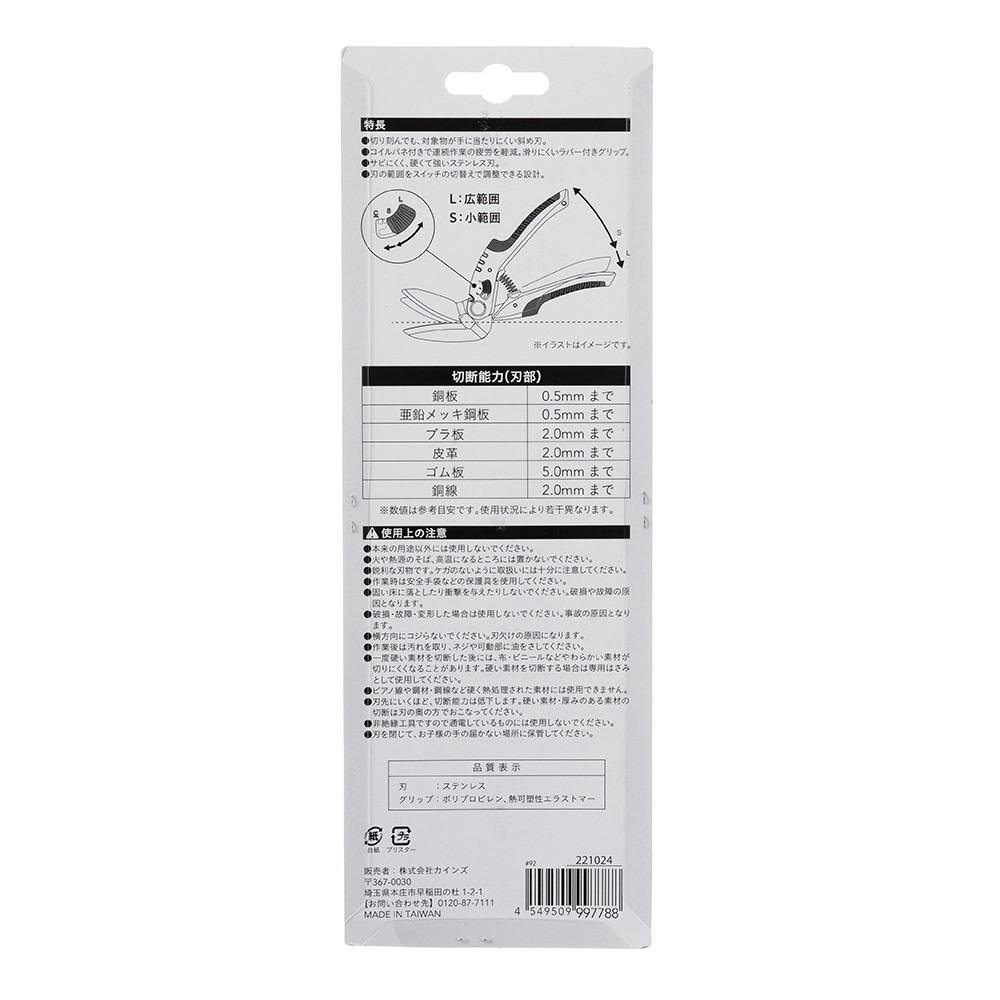 ●細かいギザ刃で切断する素材を逃がさず、カーブ刃で軽くスムーズにカットできる●紙・布・革から薄板材や線材なども簡単に切断可能な万能はさみ