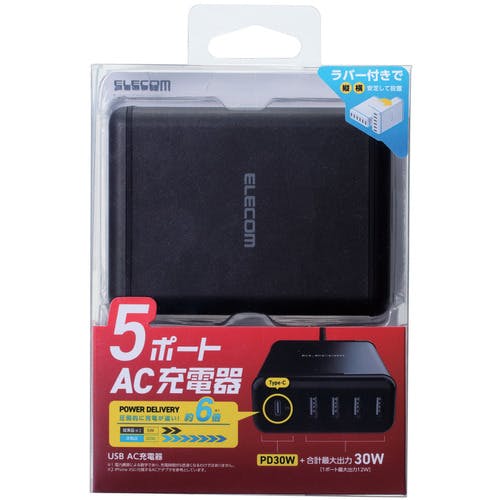 【CAINZ-DASH】エレコム Power Delivery対応 5ポートAC充電器 MPA-ACD02BK【別送品】