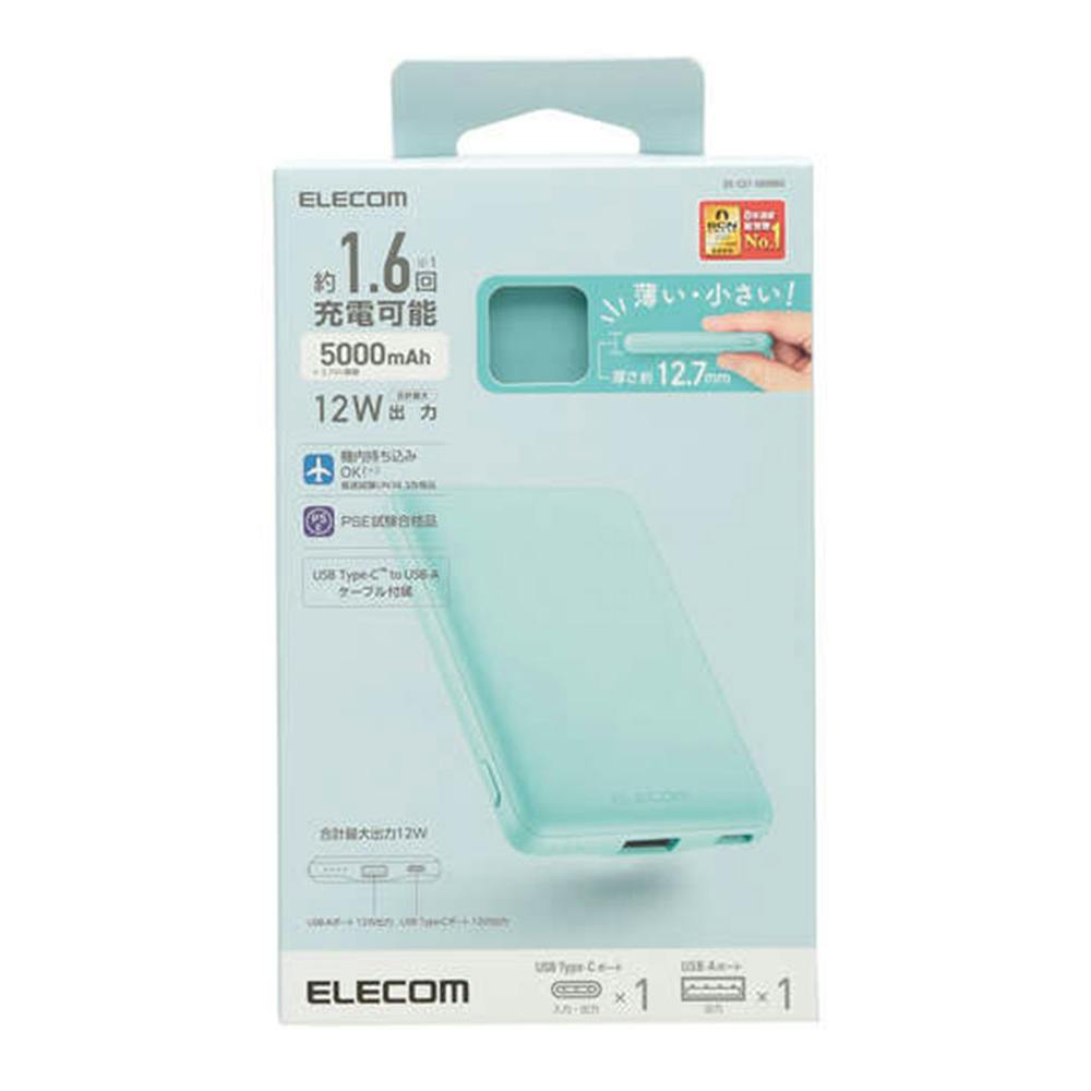 エレコム 薄型コンパクトモバイルバッテリー ブルー 5000mAh/2.4A/Cx1+Ax1 DE-C37-5000BU